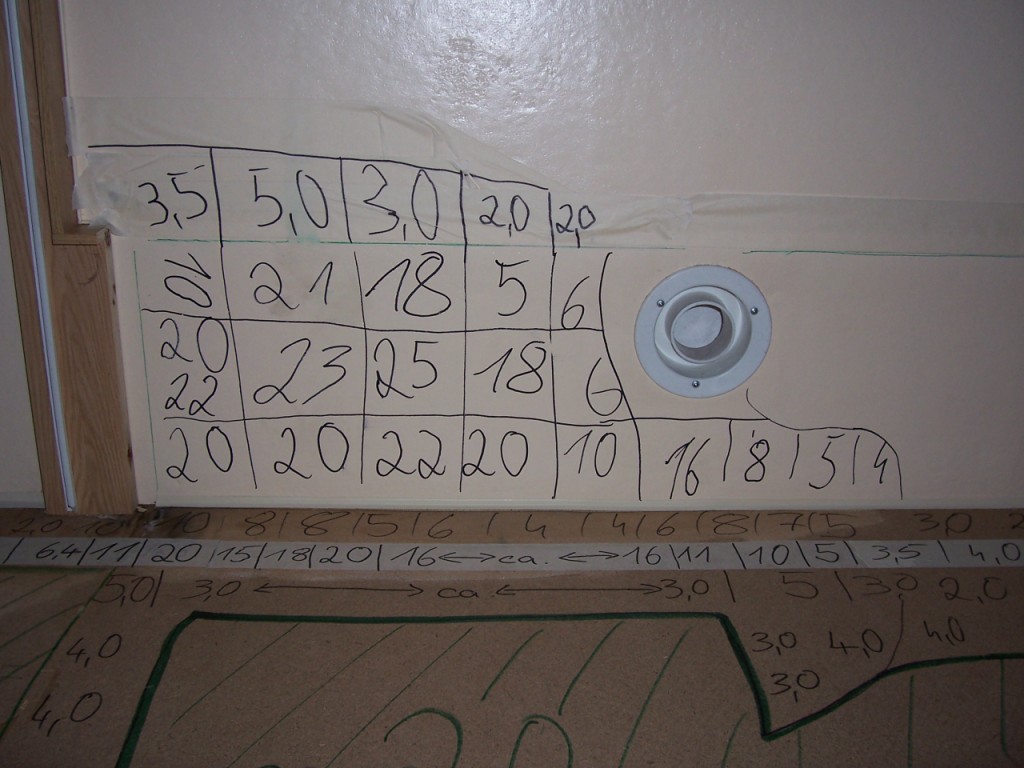 Hier sind die Messwerte vom Greisinger GMI 15 die ich praktischerweiße direkt an die Wand geschrieben habe.