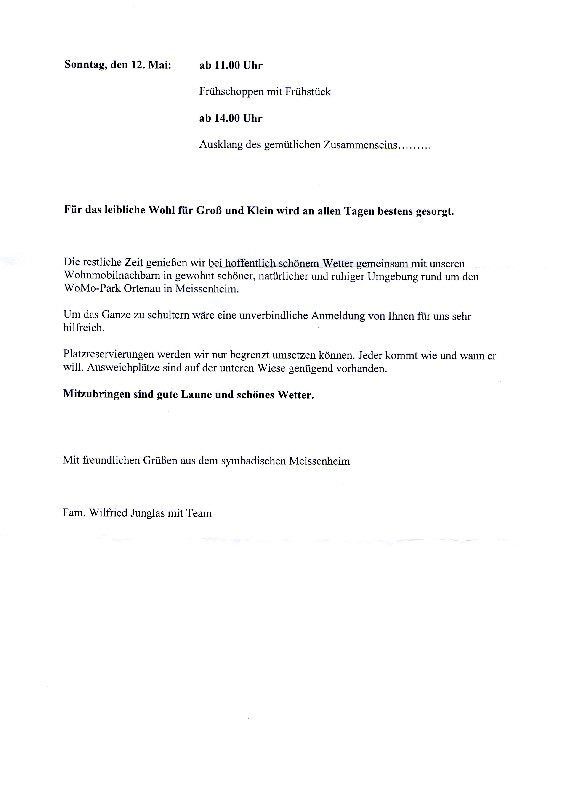 Danke für die Informationen. Ist ja wirklich ein schönes und gepflegtes Haus. (Steckt bestimmt viel Geld drin) Zu der Kanu--tour: Vor meiner Gewichtszuname nach der Herz-Operation hatte ich schon immer Schwierigkeiten in einem Kanu rein zu kommen. "Geschweige jetzt" (Bin gerne Kanu gefahren) Nun bin ich froh wenn ich ins Wohnmobil komme. :wink: :D Gegenüber bei der Firma wird gerade ein Zelt aufgebaut, wird am Wochenende bestimmt ein Fest von der Firma gemacht. (Ist im Moment sehr laut hier) Aber das geht vorbei. Ist ein sehr schöner Platz. 8) Ich gebe mal die Einladung zum Frühlingsfest weiter : ![]() ![]() Toller Stellplatz in schöner Lage am Rand der Gemeinde. Ruhig gelegen. Einfache und gut zugängliche Ver- und Entsorgungsanlage im Eigenbau – direkt neben der ersten Reihe der Stellplätze. Anmeldung durch Bezahlung der Stellplatzgebühr im Kuvert im Einfahrtsbereich etwas versteckt liegend. Geschotterte Stellplätze mit seitlichem Grünbereich und auf dem Gelände verteilter Stromkästen. Weitere Empfehlung: Gasthaus Riedhof mit gutbürgerlicher badischer Küche. Preiswert und reichlich. In 10 Minuten fußläufig erreichbar. nicht sehr großer womo-stellplatz > haben aber einen ausweichplatz hinter dem offiziellen stellplatz > zudem ist der viel besser ! 24 auf schotterrasen > ausweichplatz auf rasen. 8,00 incl. strom. betrag wird in umschlag gelegt und in kasten geworfen ! wasser 1,00 eur. auf dem offiziellen stellplatz kostet strom 2,00 eur 24 h. bild 1 offizieller stellplatz - bild 2 ausweichplatz. ![]() ![]() Hier ein paar aktuelle Bilder des Stellplatzes vom 27.03.17 Blick auf den Platz A (Hauptplatz) ![]() Blick vom "Mount Meißenheim" auf Platz A, dahinter Bildmittig das neue Rathaus von Meißenheim (ab 1.4.17) ![]() Blick auf Ausweichplatz B mit Tipi und Feuerstelle ![]() Blick ebenfals Platz B, hinter den Baumstämmen der (Not)Ausweichplatz C ![]() Auf Ausweichplatz B und C ist Strom nur bedingt vorhanden, es wird daran gearbeitet, aber noch etwas Zeit benötigen. Es gibt gesamt Platz für bis zu 130 Womos. Hunde erlaubt aber Leinenpflicht am Platz. Aktualisierung August 2017: Platz kostet 8,- EUR, Strom ist (im vorderen Bereich) an den Säulen zu münzen und kostet 1,- EUR pro KW . Wie es hinten auf der großen Tipi-Wiese aussieht, weiß ich jetzt nicht, man kann dort aber auch Strom erhalten (man wird gefragt beim Empfang in der Polsterei-Firma nebenan). Alles Weitere ist schon gesagt. Ansonsten ist der Platz sehr, sehr schön und gepflegt, alles schön grün und die V&E ist TOP. Waren auf unserer Tour gleich 2 Mal dort .... :ja: ![]() ![]() Ach ja: Wasser lässt sich ziehen 10l =10 Cent, 100 l = 1,- Euro .... Der Strom ist günstiger geworden. Es gibt jetzt 1,5 kW/h für 1,-- Euro. Nach langer Krankheit ist der Platzbetreiber leider am 9.6.18 Verstorben. Es geht aber ganz normal weiter. Schöner Platz, alles da was man so braucht ! Wir haben dort herrlich ruhig geschlafen ... :gut: (Tolles neues Rathaus gleich gegenüber - sieht aus wie gelandetes UFO :) als "Landmarke" .. :) ) ![]() ![]() Gibt es den Platz noch? Deren Webseite führt ins Nirwana, gehackt. Danke, Wolfgang. Wir sind jetzt dort. Die haben sogar jetzt Strom auf der ersten Wiese. Die Webseite die gehackt ist ist wie dein Link, aber ohne www. Zu der kommt man wenn man den SP bei Google Maps anklickt. Wir waren gerade dort, der eigentliche Stellplatz ist sehr schön, hohe Bäume machen jedoch den Satempfang auf sehr vielen Plätzen leider unmöglich. Es gibt Stromsäulen mit Münzeinwurf. Auf der großen Wiese unten ist überall Satempfang möglich, man kann sich den Platz aussuchen und irgendwie hinstellen. Auch Änhänger und zusätzliches Fahrzeug ist dort kein Problem, das kostet jedoch extra je 2,50 Euro zusätzlich. Es gibt Stromkästen mit vielen freien Steckdosen, kein Wunder, die Strompauschale ist dort pro Tag für 5.50 Euro und Klimaanlagen müssen extra angemeldet werden. Das ist der bisherige Rekord :) Sonst wurde ja alles schon erwähnt. Es gibt schöne Radwege und einige Baggerseen im Umkreis von wenigen Kilometern. :) |