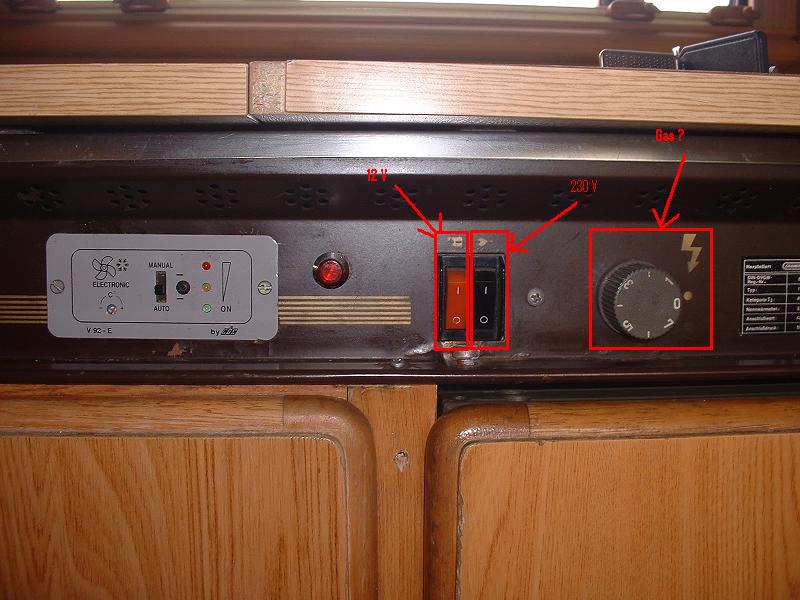 Jetz gibts an der Front des Gasherd/Spüle/Külschrank Einbaus ganz links mal einen Schieberegler mit 3 Positionen: Manual / Off / Automatic, und eine kleine Drehschraube, mMn für die Betriebstemperatur ?