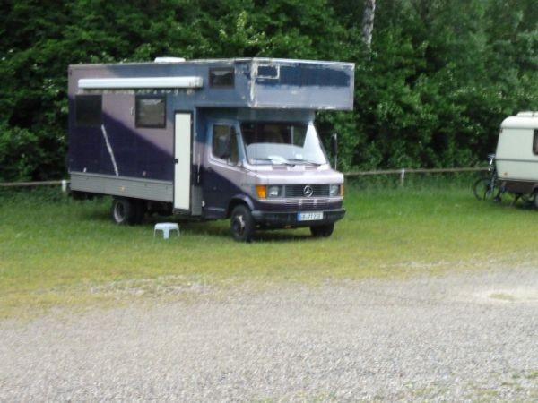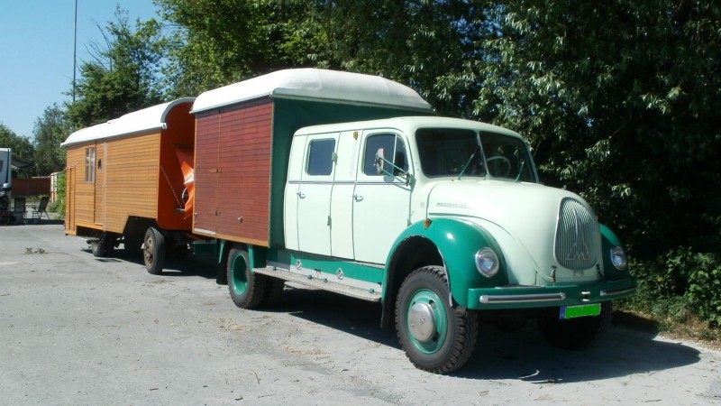 Das war mal unser,zu unserer Anfangszeit. War ein Mercedes 506 mit einem aufgesetztem Wohnwagen.