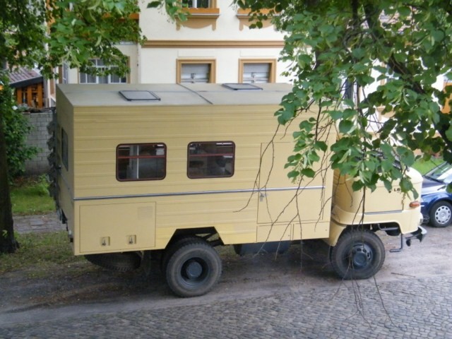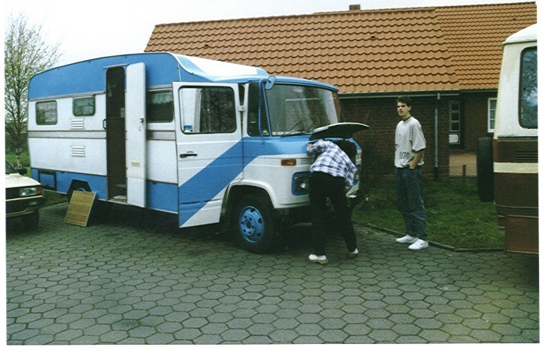 Mit solch einem "Auto" war ich früher im Fernverkehr. Bis runter nach Ungarn hat es uns getrieben. Und man mag es heute kaum glauben, die gesamte Ladung - die auch den Koffer ausfüllte - war ein einziger PC (also Computer)... Da der Motor vom W50 genau in der Mitte des Fahrerhauses war und unter einem erhabenen Tunnel verborgen war, nutzten wir eine Schranktüre zum Schlafen. Eine leere Bierkiste auf den Fahrer- und eine auf dem Beifehersitz, darüber die Schranktüre und eine Luftmatratze. Faszinierend, wenn man daran zurück denkt... und äußerst hilfreich bei der Suche nach einem geeigneten Womo, wenn man auch schon mal so geschlafen hat ;0) an Alle Den haben wir letztes Jahr in Noordwijk gesehen: