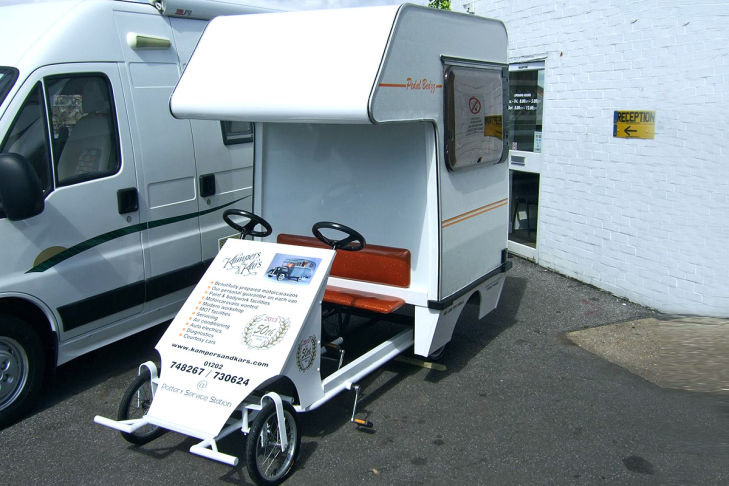 Nu is das ja hier gelandet von wegen Womo-Kuriositäten - und das Format ist in der Tat ungewöhnlich. Am meisten stechen mir allerdings die beiden Lenkräder ins Auge. Und meine krude Fantasie spinnt natürlich rum, was, wenn der eine nach links und der andere nach rechts lenkt? 8) Für die "Trockendenker" - selbst wenn beide Lenkräder "zusammengeschaltet" sind, ist das ganze ein spannendes Kräftemessen.... ;) ...einer kann sich doch vom Fahren hinten zu ausruhen reinlegen...der andere fährt solang! Wurde in GB gebaut,daher Rechtslenker und wie man schon am Fahrer erkennen kann gibt er die Richtung vor.das linke Lenkrad ist wie beim Autoscooter nur Attrappe :kuller: franz ![]() was macht der Truck auf dem Campground ? ![]() doch kein Truck.. ![]() Wie der wohl innen aussieht ? Netzfundstücke :) ![]() Sieht aus wie aus einem Mad Max Film! :D :lach: ![]() Noch ein Netzfundstück: ![]() Moin , das hier ist zwar schon etwas älter , aber trotzdem genial : [youtube]https://www.youtube.com/watch?v=56XL0TysIn0[/youtube] Übrigends - ein toller Tread . PP Scheint etwas kommerzielles zu sein, habe ich aber noch nie gesehen. Eine Pickup/Dachzelt Kombi. RK Northstar, stand schon vor 3 Jahren an der Caravan Messe in Bern, habe ich auch schon in Stuttgart an der CMT gesehen. Ernst Hallo an Alle, nachdem ich schon so viel über das jährliche Selbstausbauer-Treffen --> Link gehört und gelesen habe, bin ich in diesem Jahr zum ersten Mal selbst dabei (mein Grenzland ist zwar nicht selbst ausgebaut, aber doch kräftig "veredelt"); ausserdem sind dort auch Womo's "von der Stange" gern gesehen... Ich werde fleissig Fotos machen und bei Interesse hier einstellen. Liebe Klaus