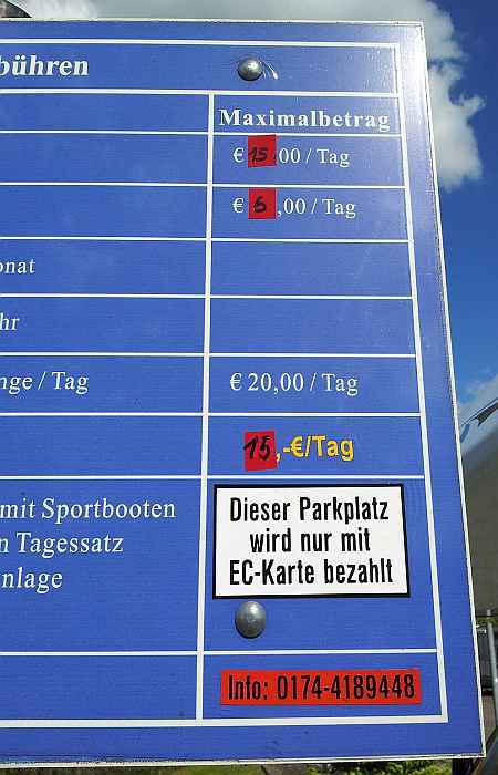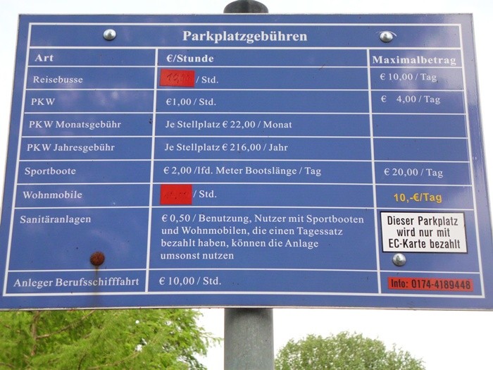 Mir wurden für 15 Minuten 10€ abgebucht. Auf meine Nachfrage wurde mir sinngemäß gesagt : Pech gehabt. Entsorgen konnte ich auch nicht,da es nicht möglich war an die Station zu fahren. In meinen Augen ist das sehr grenzwertig,um es vorsichtig aus zudrücken. Veit Ich war vom 01. bis 03. Juni auf dem SP, Gebühr von 10,- € ist noch aktuell. Ich kann aber nicht sagen, ob es mit einer bestimmten Uhrzeit verbunden ist. Vom Platz aus werden täglich Rundfahrten mit einem Floß angeboten, Mindestteilnehmerzahl liegt bei 4 Personen. Der Platzwart (Besitzer/Betreiber des Kiosk) fragt morgens, wer daran Interesse hat. Hier noch ein paar aktuelle Bilder vom SP: ![]() ![]() ![]() Die Sanitärräume befinden sich im Hof der angrenzenden Sportplatzgaststätte. Wie es innen aussieht kann ich aber leider nicht sagen, war nicht drinnen! Entsorgung zumindest der WC-Cassette ist vor dem Gebäude links möglich. ![]() Ich war schon häufiger auf diesem Platz zu Besuch und es hat mir immer gut gefallen. Der Platzwart ist sehr freundlich, kennt sich hervorragend aus (auch geschichtlich) und kann so manchen Tip für einen Tripp (wandern oder radeln) in die Umgebung geben. Ob der Platz oder der Ort gefällt ist, wie bei allen Zielen, eine Frage der Wahrnehmung bzw. der Vorstellungen. Ich persönlich finde Brandenburg eine Reise wert. Die Stadt vom Wasser her zu erkunden, oder sich im Städchen umzusehen, vor allen Dingen, wenn man die ständig stattfindenen Veränderungen betrachtet. Von Brandenburg aus nach Berlin fährt man mit dem Zug ca. 45 Minuten. Die saitären Einrichtungen (außer Ver- und Entsorgung) habe ich nich nicht genutzt, schaut aber aus, als wenn sie noch aus DDR Zeiten stammen saniert wurden. Der Platzwart ist Pächter der Grundstückes. Es gehört der Kirche, die nicht gerne Veränderungen, vor allen Dingen wenn sie Geld kosten, mittragen bzw. bezahlen. Die Lage des Platzes direkt unterhalb des Domes ist schon etwas besonderes. Julia Habe den Platz vor etwa einem Jahr besucht. Die sanitären Anlagen haben mich nicht überzeugt. Während dem duschen ging plötzlich das Licht aus (schaltet über Bewegungsmelder) stand dann plötzlich minutenlang bis zum Ende meiner Duschzeit im Stockdunkel, auch kann es passieren, dass jemand die Toilette (gleicher Raum ohne Trennung) zur "großen Sitzung" nutzt während man duscht. Zur Sauberkeit schreibe ich lieber nichts :( Die Entsorgung vom Grauwasser sollte ich über einen normalen Gulli gleich bei der Ausfahrt rechts vornehmen, habe ich dann aber nicht gemacht. Der Parkplatz wird ausschließlich mit EC Karte bezahlt, der Platzwart war während meiner Zeit nur enmal kurz da. Der Stellplatz an der alten Feuerwache in Brandenburg gefällt mir da wesentlich besser.
