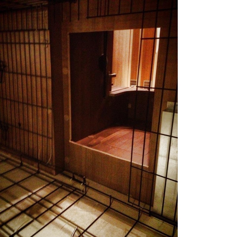 Auf den Bildern sieht der Durchbruch noch sehr grob aus, mittlerweile sind da überall runde Ecken (aufgeschnittene Plastikrohre) und ordentliche Rahmen eingearbeitet. Außerdem PVC-Boden mit Schaumstoffunterlage damit es alle kuschelig haben ;)