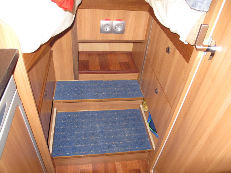 Moin Klasse Umbau mit guten Ideen! :top: Platz für eine Leiter ist bei uns keiner. Wir steigen über die Sitzgruppe hoch, aber da der höhere Boden auch erst nach dem Fahrerhaus anfängt, geht das gut. Wenn ich vor dem Bett stehe, geht mir die Matratze bis knapp über den Bauchnabel. Christian Christian Einbau Alkovenfenster Da uns das Serienfenster im Alkoven des Alpa nicht gefallen hat, haben wir dieses erst gar nicht einbauen lassen. Wir haben dann nach langer Suche Fenster von Polyvision verbaut, Maße 700 x 400. ![]() Ein Stück Alpa :ja: ![]() Fenster mit Rollo linke Seite innen ![]() Fenster rechte Seite innen ![]() rechts außen ![]() links außen Hallo Vosu, wieso baut ihr von Längsbett auf Querbett um? Ich baue zur Zeit genau in die andere Richtung weil jeder in sein Bett steigen kann ohne den anderen zu stören. In der ursprünglichen Version läßt sichs so schwer kuscheln :hoppel: :mrgreen: :oops: Einbau anderer Wasserhahn im Bad und Rollo vor dem Fenster (Fenster wurde druch Dethleffs eingebaut) ![]() ![]() ![]() Moin Heute habe ich endlich wieder bissl Zeit und Lust gehabt die Bett-Hinterlüftung fertig zu stellen. ![]() ![]() Christian Servus Christian, super sache. Bin auch gerade dabei mir eine Heizung fürs Bett ( Alkoven ) zu basteln. Ich nehme die Warme Luft vom Badstrang ( mit einer Strangsperre ) ab da das Bad so Warm wird und wir eh nur auf Champingplätze sind und dort die Duschen und Toilette nutze. Werde wenn es soweit fertig ist ein paar Bilder einstellen . aus Aschaffenburg Hallo Liebe Womo freunde wir hatten einen alten Dukato einJahr mit 80Ps ich habe alles mäliche repariert neue wasserhahnen Truma Heizung repariert zweite Batterie eingebaut.das Problem sind bei uns die Berge und so hab ich ihn verkauft und zur Pensionierung einen 2 jahre alten Ducato mit 130 Ps und Sunlight aufbau für mich und meine Frau gekauft am neuen habe ich im Laderaum ein Zwischen boden mit Schubladen eingebaut sowie eine Truma 2Flaschenanlage im Innenraum div Tablare in den Kästen. sowie ein Fahrradträger den mann herunter kurbeln kann zum aufladen der E Bike Allzeit gute Fahrt wüscht euch turi47 aus der Ostschweiz 15Km vom Bodensee Moin Ich hab die Luft vom Gaskasten- und Fußwärmer unter dem Esstisch-Strang abgeknüpft. Nicht schaltbar, denn die Matratze hatte schon Stockflecken bekommen, ich muss da also eh dauerhaft für Luftbewegung sorgen. Christian "von vosu99 » 21 Dez 2013 20:45:34 Einbau Alkovenfenster" ...das mit dem Kuscheln in Alcoven finde ich als guten Grund für Umbauarbeiten Hymer Van 562 als Jahreswagen gekauft - Betten und Unterschränke bis Küchenblock / Nasszelle komplett rausgerissen - Heizschläuche, Wasser und Abwasser neu platzsparend verlegt - Bettunterschränke als Vollauszüge neu konstruiert mit zusätzlichen Staufächern (Weinflaschenbunker etc) - Neue Betten mit verbessertem Unterbau (Yachtoflex / Froli) - Küchenblock umgebaut (Vollauszüge), hierfür Elektrounterverteilung verlegt - 2x 80 W Solar mit Wandler, zweite Bordbatterie - Waeco Wechselrichter mit je 1 getrennte Steckdose Wohnbereich / Heckgarage - Sitzkiste hinter Fahrersitz umgebaut >Vollauszug, wahlweise von oben zu erreichen - Eigenes Trägersystem für Dachreling konstruiert für Kanutransport, mit abnehmbarer Heckladerolle - Solar-Außendusche mit Dachtank (in Vorbereitung) - Regalsystem für 6 große Stapelboxen in Heckgarage, passen trotzdem noch 2 Fahrräder rein. Alle Einbauten im Heckbereich (Betten, Schränke, Verkleidung Truma etc) sind nun schnell und einfach mit dem Akkuschrauber demontierbar, falls Revision / Reparatur erforderlich ist. Vorher war alles gedübelt. Das nächste Wohnmobil baue ich wieder komplett selbst. Was in der Serie allein an Platz verschenkt wird, ist haarsträubend. vom Jambo [quote="vosu99"]Als erstes kam der Bettumbau im Alkoven, von Einzellängsbetten auf ein Querdoppelbett. Dazu hatten wir bereits bei der Bestellung geordert, dass die ursprüngliche Leiter gar nicht erst eingebaut wird........... Hallo VoSu99, Respekt, saubere Arbeit :top: LG Diesch an Jambo45: Finde ich absolut spannend und hochinteressant! Zwar kann man geteilter Meinung darüber sein, ob der Neuausbau eines gerade mal ein Jahr jungen Fahrzeuges sinnvoll ist, aber es ist sicher genial, das Interieur zu optimieren! Wäre es möglich, da mal eine Fotoserie (auch mit Details und gern als PN) zu zeigen? Insbesondere solche Lösungen wie der erwähnte "Weinbunker" und die überhaupt platzsparende Konstruktion interessieren mich gewaltig! Herzliche !