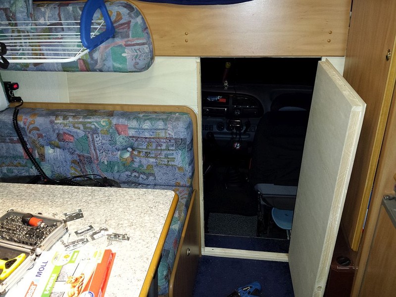 Und es funktioniert trotzdem? :eek: Öhhm Rolf, mehr als die 2 da oben hab ich nicht ;) Der Effekt ist krass, bei Außentemperaturen von 2°C und Heizung auf 1 Sitz ich im t-shirt drin und mir ist richtig warm. Genial! Christian Hallo Christian, Super gelöst, Respekt. Sehe ich das richtig, das du einen Holzrahmen konstruiert hast und diesen dann mit Styro?platten ausgefüllt hast? Auf die Außenseite dann leichte Holzplatten, also so eine Art Holzständerbauweise, oder? Wie bekommst du den Spalt zwischen Tür und Wand dicht, oder ist das eine Schiebtür? Echt schöne Lösung, ich such da auch was, da mir der Vorhang auch auf die Nerven geht und das ganze für uns bezahlbar bleiben soll. Könntest du mal einen groben Kostenrahmen geben, wäre super Wenn ich mich nicht irre hat Christian "FOREX" Hartschaumplatten verwendet. Google mal danach.
