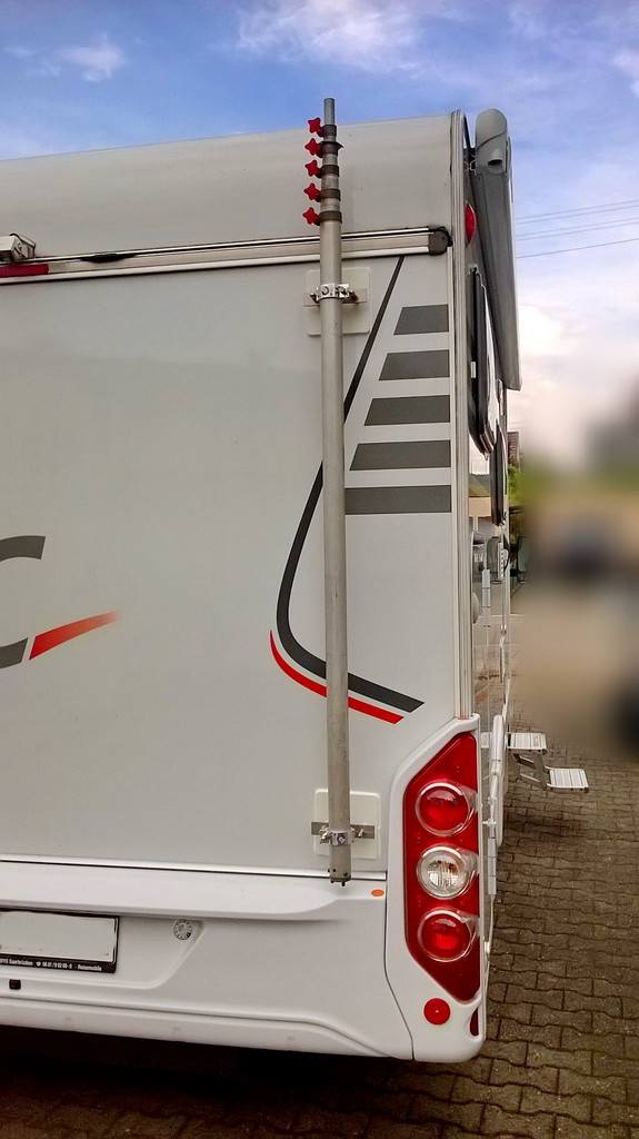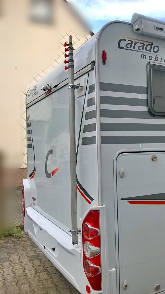 das wichtige an der Montage ist das Gegengewicht. Aber das weißt Du ja sicher selber. Da das dach unseres WoMo`s aus GFK besteht habe ich das Fahrzeug mit Reling bestellt. Diese läuft einmal komplett um das Dach. Hinten jeweils links und rechts hab ich einen Winkel aus dem Baumarkt montiert und darauf jeweils einen PL-Antennenfuß. Links für 2m/70cm rechts für die verschiedenen Kurzwellenmobilstrahler. Im Moment bin ich in Lazio unterwegs und habe recht gute Verbindungen nach DL und F auf 40m zu meinen Funkfreunden. Ich hatte auch schon eine umgebaute CB-Antenne (DV 27) für 20m benutzt. Funktionierte auch während der Fahrt in Griechenland ufb. Einfach das kurze Abstimmelement gegen ein längeres austauschen. vy 73 Nikolaus