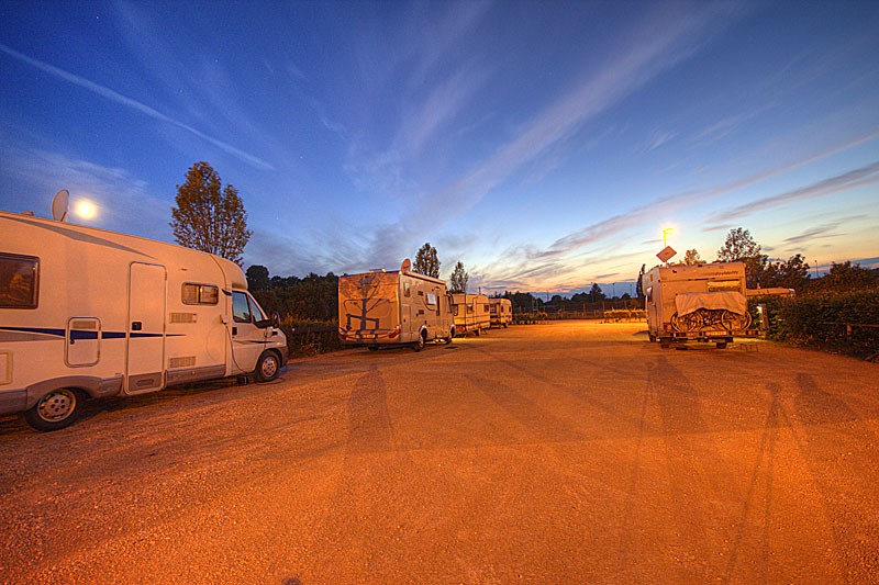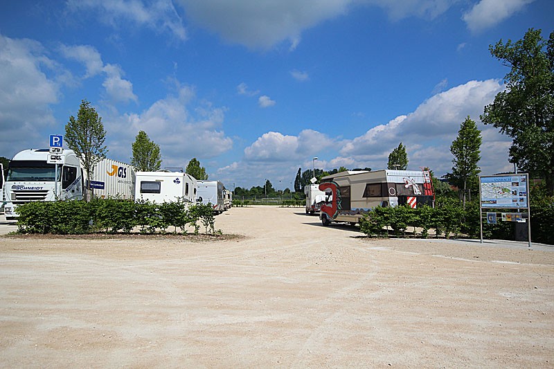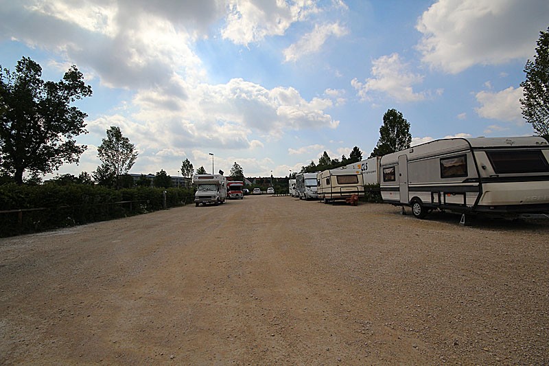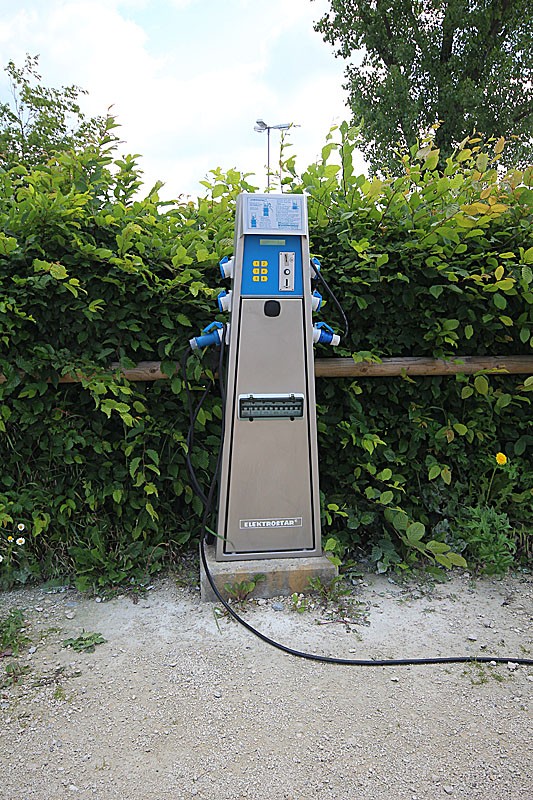 Der Platz ist sauber und gepflegt. Wenn man die Platzschildchen am Zaun nicht lesen kann, dann ist im ungünstigsten Fall nur Platz für 6-8 Womos, abzüglich zwei Wohnwagen, die offensichtlich als Dauerparker auf dem Platz stehen. Der "Stellplatzwart" war nicht anwesend ;-), nimmt aber wenigstens mit seinem Wohnwagen keinen Womo-Stellplatz weg, sondern steht neben dem Platz in Stromsäulennähe. Die nahe Bahnlinie kann manchmal nervig sein. Auch auf dem direkt angrenzenden Schotter-Parkplatz werden zu später Stunde LKWs abgestellt. Die Grauwasser-Entsorgung ist leider nichts für uns, da wir keinen Abwasserschlauch haben.