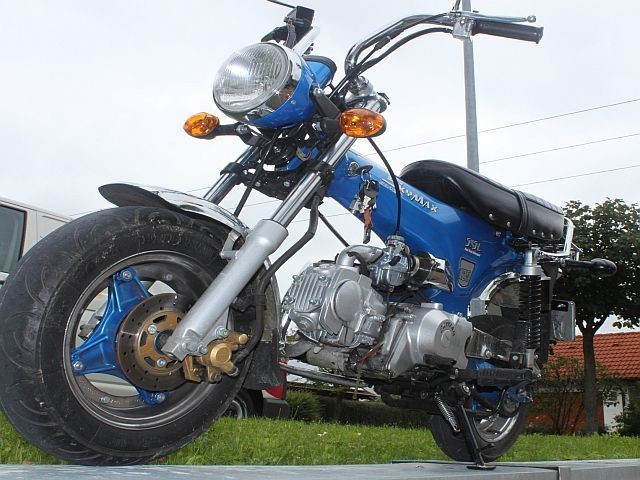 seit 2,5 Jahren fahre ich jetzt eine Skyteam Dax 125 Die Sky hat jetzt fast 4500 km. auf der Uhr. Es wurden folgende Modifikationen durchgeführt ordentliche Reifen montiert (Heidenau) Antriebekette erneuert 26 mm Vergaser und noch einige Kleinigkeiten geile Nockenwelle und 140cc Zylinder montiert. Motorleistung jetzt ca.16 PS. Fahrleistung dementeprechend,einfach nur super,nichts für Fahranfänger :D ![]() |