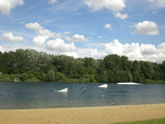 und sind begeistert. Es ist ein abgeteiltes Areal neben einem Parkplatz, kleiner Hafen, Seerestaurant und Hallenbad in unmittelbarer Nähe. Kinderspielplätze (wer's braucht) sind vorhanden und man kann Tretboote mieten. Spannend war die Wasserskianlage, hätte ich ja gern mal ausprobiert. Aber ,,es war zu voll". :D Der Eiswagen fährt den Platz täglich an - lecker italienisches Eis, Kugel -,60 €! Da waren wir platt. Der Platz ist übrigens kostenlos (außer Strom). Hier ein paar Bilder: