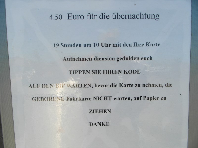 Wo steht noch nicht fest. Stand 09/2011 gary32 Der Stellplatz befindet sich genau an der Stelle an der in der Karte der Pfeil gesetzt ist. Gebührenpflichtig von 19 bis 10 Uhr. Er kostet nun 4,50€, zahlbar mit carte bancaire +Geheimzahl. Ein Mitarbeiter der Gemeinde kontrolliert am Abend. In der Übernachtungsgebür sind Wasser und Entsorgung enthalten. Angeblich laut französischem Text auch Strom, aber es gibt keine Steckdosen. ![]() Morgens nach 9 Uhr kommt in der Sommersaison zum nahen CP ein Bäcker, der dann so gegen halb 10 auch am Stellplatz hält. Direkt neben dem Stellplatz sind 2 Lokale. ![]() ![]() ![]() ![]() Grüße aus Gouville-sur-Mer. Der Stellplatz kostet aktuell 14 Euro plus 66ct pro Person Kurtaxe. Strom von 19-10 Uhr, V/E inclusive auch Wasser. Leckeres Restaurant am Strandzugang! |