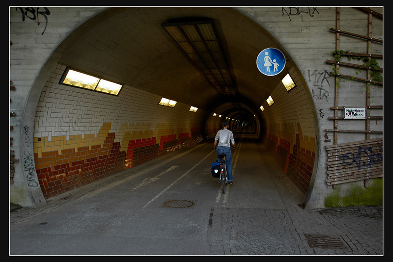 In Tübingen aus Richtung Westen angekommen, ging es unter dem Schloss durch den Berg, zum Neckar hin.