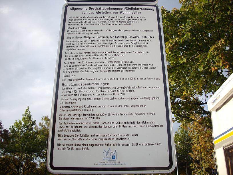 So abwägig ist das mit abkassieren nicht. Die 300€ waren ja als Kaution gedacht für alle Wagen. Das ist ja dann noch günstig im Gegensatz zu Waiblingen bei Stuttgart, weil die wollen von jedem Wohnmobil 100€ Kaution laut dem Schild dort. In der realität wird es (noch) nicht verlangt. Und es betrifft nicht Wohnwagen sondern nur Wohnmobile.