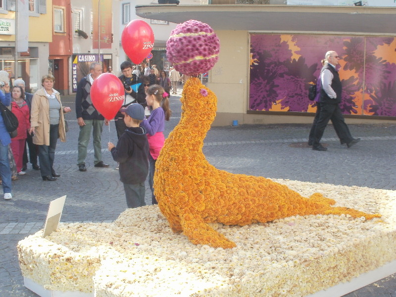 Allen denen, den es jetzt oben im Schwarzwald zu kalt, zu nebelig oder zu naß ist, die aber trotzdem in der Gegend unterwegs sind....unten in der Ebene findet in Lahr bis zum 7.11.2010 die Chrysanthema statt. Die ganze Stadt ist voll mit Chrysanthemenarrangements. Sehr schön: --> Link
