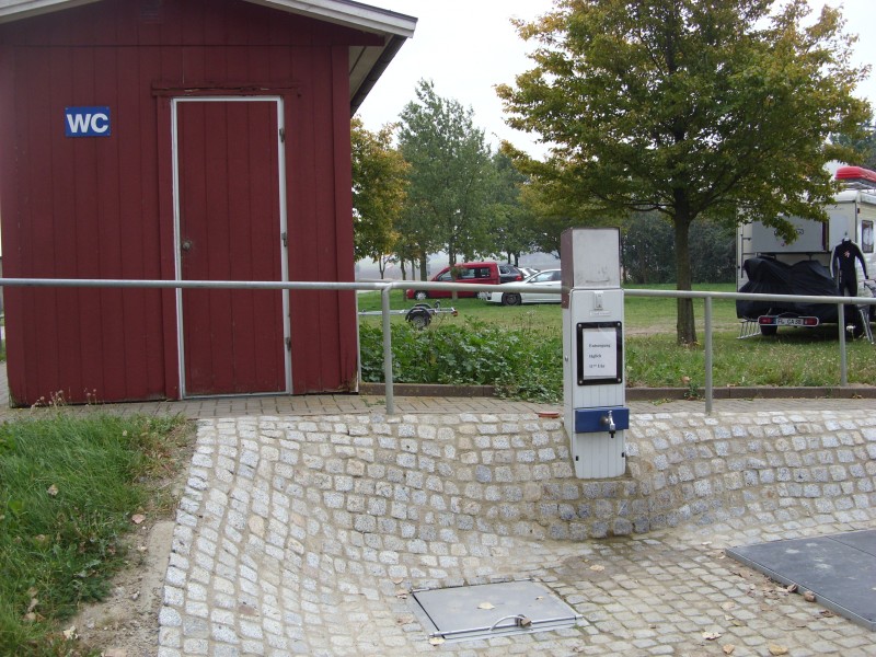 Nach Rücksprache kommt der Betreiber (?) und schließt eine Toilette zum ver- und entsorgen auf. Man muss ihn halt zufällig erwischen und einen Termin vereinbaren. Wir waren gerade auf diesem Stellplatz durch Zufall. Wir wolllten eigentlich auf einen anderen, sahen das Schild und schauten nach.