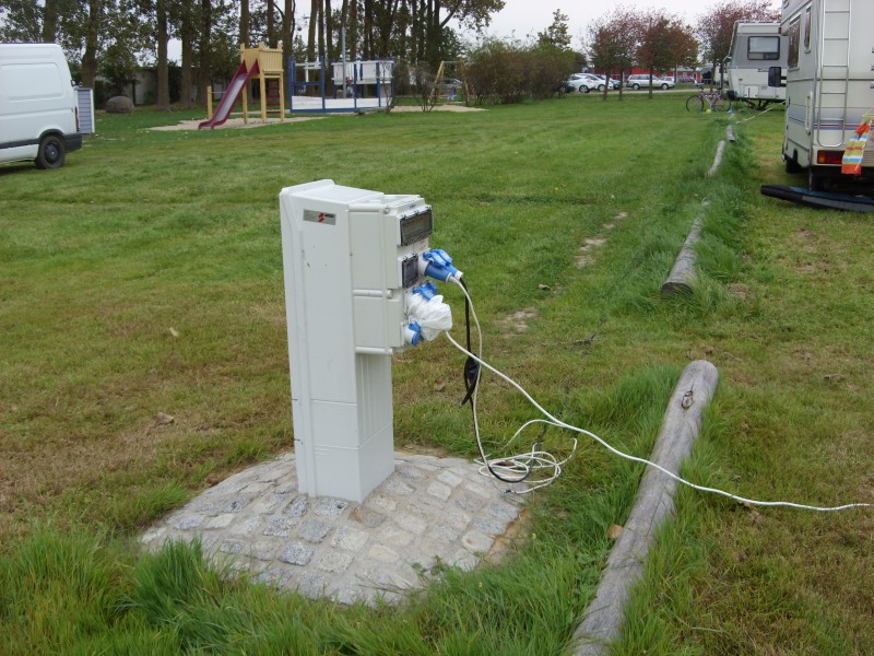 Vielleicht konnte man deshalb auch den ca. 300m dahinterliegenden Parkplatz als Stellplatz nutzen. Dort fanden wir auch die Strandbuchten etwas schöner. Ansonsten sind die Toiletten jetzt über Münzautomaten (0,30€) zugänglich, die Entsorgungsstation (2,-€) wird täglich um 11:00 geöffnet (Dauer nach Bedarf), schräg rechts hinter dem Kiosk gibt es jetzt eine Stromsäule.