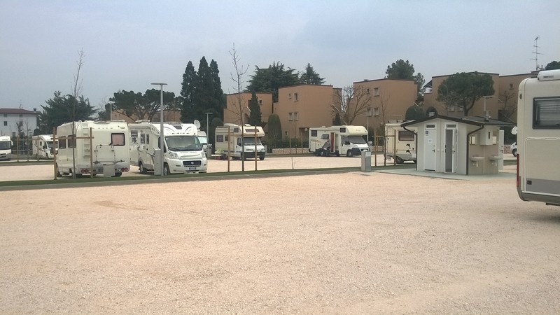 dieser Stellplatz, der direkt neben dem CP Bella Italia lag, wurde zu gemacht. Der Platz wird nun vom Campingplatz mitbenutzt. Der neue, große, beleuchjtete Stellplatz von Peschiera für ca. 80 Womo ist rechts an der Via Milano, gut gekennzeichnet, ca.200m vom alten Platz in Richtung zum Hafen. Der Platz wurde im Febr. 2014 eröffnet. Bei Einfahrt von der Via Milano rechts, an der Schranke Ticket ziehen, bei Ausfahrt vorher am Automat bezahlen und Ticket an der Schranke eingeben. Sehr schön angelegt mit Servic-Häuschen, 2 Duschen und 2 WC, sowie 2 Geschirrspülbecken außen und moderner VE-Stelle. 20 Stromsäulen mit je 4 Anschlüssen. Preis pro 24h 12€ incl. Strom und VE. Koordinaten: N 45.44005 E 10.68466 Bilder: Hier die Bilder zum neuen Stellplatz Peschiera: Eingangsbereich ![]() Kassenautomat ![]() Stellplatz mit Sevice-Häuschen ![]() Service-Häuschen ![]() Hallo Wir waren auch auf diesem Platz. Alles bestens und Vorbildlich. Es fahren aber Züge hinter dem Gelände her. Wenn man weiter vorne Parkt, stört das nicht so. Noch zu erwähnen wäre ,,Wlan,, kostenlos. LongJohn Moderation durch wiebke:hier der SP an der Via Milano --> Link |