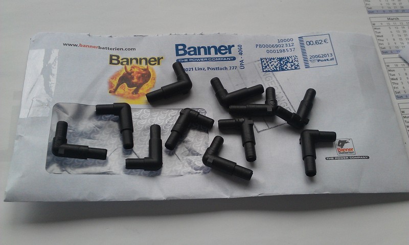 Das Winkelstück muss daher lediglich einschoben werden, sollte dies nicht möglich sein, so dass habt ihr - wie in meinem Fall - ein falsches Winkelstück! Sollte der Händler kein richtiges Winkelstück haben, so kann er dies kostenlos über seinen Großhändler nachfordern. Eine Verwendung von "Standard"-Winkelstücken von anderen Batterien ist im hier vorliegenden Fall der Energy Bull 100Ah nicht möglich. Auf der Banner-Homepage ist nun der Hinweis das die 115 Ah Batterie einen Entgasungsschlauch benötigt! Klasse! Ich fahre seit 2 Jahren ohne Schlauch herum, da ich damals die Ausage von Banner bekommen habe, die Batterie benötigt keinen Schlauch... Hallo Ralf