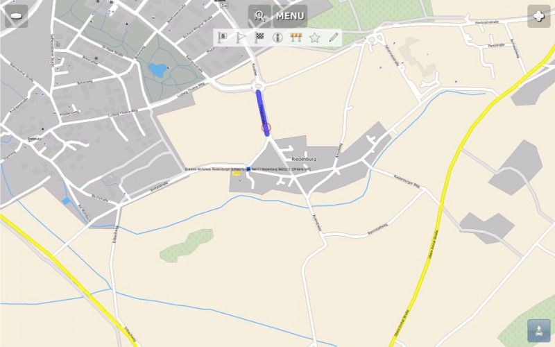 leider habe ich kein Android, aber ich vermute mal, dass das Programm die gleichen Funktionen wie unter Windows hat: Auf das Display tippen, dann erscheint relativ kurzzeitig eine Auswahl- möglichkeit direkt unter dem Menü-Knopf. Da kannst Du "Start - Ziel - Wegpunkt - Info usw. setzen.