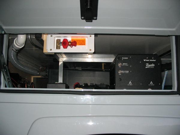 Heizt Ihr denn mit Diesel? Wenn ja, wofür braucht Ihr dann den großen Gastank, nur für's Kochen? Das sind unsere Schuhfächer. Unser doppelter Boden ist 40 cm hoch.