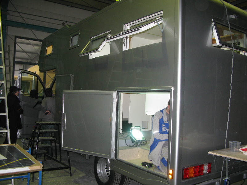 Vom Foto her hätte ich Euer Auto länger geschätzt. Den Unterflurkasten hätten wir auch gerne gehabt, ging aber nicht mehr wegen dem Gastank. Ja, es gibt nur einen Schlüssel für den Aufbau. Mit unserer Schließanlage zuhause ließe sich das ganz bestimmt nicht koppeln, wir haben für unsere Alarmanlage im Haus einen ziemlich exotischen Schlüssel. Nun ist das Fahrgestell vom Hof und es geht weiter. ;D ![]() ![]() Hallo Das ist kein Wohnmobil, das ist ein Traum :lol: didje Es ist eine tolle Reisekiste!!! thatslife Unsere MK II wird immer gebrauchstüchtiger, nun hat sie sogar Fenster. ;D Ich bin ganz happy über das Badezimmerfensterle, war übrigens die Anregung einer Userin, ursprünglich hatten wir nur einen Lüfter geplant. :dankeschoen: ![]() Ilka, toll, es geht ja voran. Und die Solarpanele liegen auch schon da. Das wird schon ein tolles Mobil. :ja: Und eine tolle und helle Innenraumleuchte.... :D Sieht Klasse aus, die MK 2. Das wird aber ein super Womo, sieht sehr solide aus. Schön mit den vielen Fenstern, sehr hell und gut zu belüften. Habt ihr die Polsterbezüge schon ausgesucht? Jetzt dauert es ja nicht mehr so lange und ihr könnt durchstarten. Vorfreude ist ja bekanntlich die schönste Freude. Lg. Annette