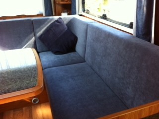 Da wir dieses Mobil länger fahren wollen, sollte uns dieser Punkt nicht weiter stören und es wurde umgearbeitet. Wir haben hier in HH einen ganz tollen Polsterer gefunden und mit ihm das Problem besprochen. Schnell waren wir uns mit dem Stoff ( ist so einer der sogar Rotwein verträgt) und den Rückenteilen einig ( alle Rückenteile wurden auf 41cm gekürzt, jetzt kann man beim lesen auch mal den Arm auflegen und viel besser aus dem Fenster gucken) Uns gefällt es ganz toll!!