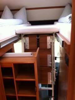 Da uns auch die Matrazen gestört haben, wurden hier ( wie schon im alten Mobil) wieder Viskoseschaumauflagen angefertigt. Das sieht man aber auf dem Bild schlecht, ist aber sau gemütlich!!