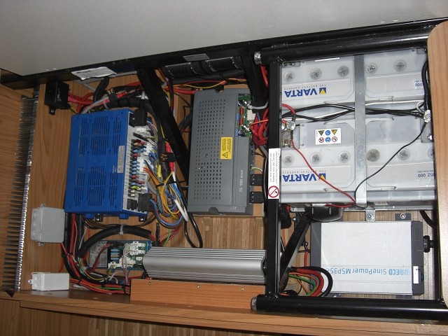 Es ist schon so spät, da habe ich statt zu antworten dem argoscamper eine PN geschickt. :oops: Nun für alle: Bitte dringend die Plus Pole der Batterien abdecken. Die Verkabelung im Bereich der Batterie ist auch eher..... abenteuerlich.
