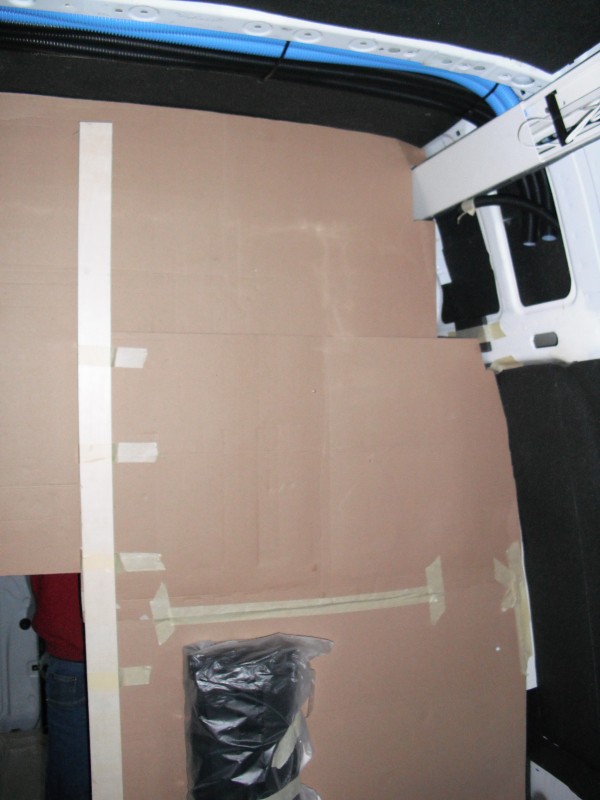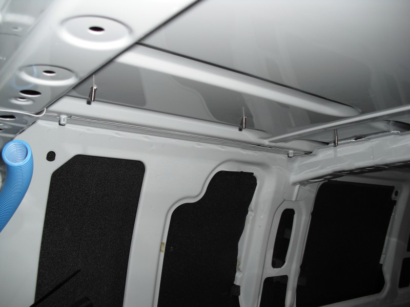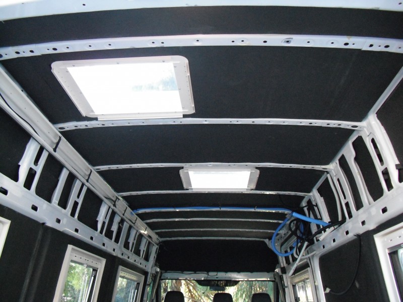Ich hatte die Platten ja schon vor geschnitten, mußten dann aber feststellen, dass die so nicht halten würden, da der Sprinter im Dach ja ganz viele Verstrebungen hat. Siehe Foto: