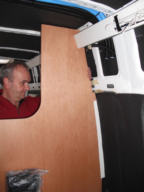 Habe euern Tread ja auch als Startseite in meinem Browser, damit ich immer schön auf dem neusten Stand bin :D Der weg ist das Ziel! :wink: so, am Samstags wars dann so weit, wir sind zum Schreiner gefahren und haben unsere Wände geholt. Wir haben uns alles in Erle natur furnieren lassen. Und haben als wir zu Hause waren gleich angefangen. Wir haben uns Schablonen geschnitten, und dann auf das Holz gelegt und angezeichnet und dann ausgeschnitten. Beim Gurtbock haben wir ein Lüftungsgitter für den Kühlschrank eingesetzt, sowie die Durchführung für den Heizungsschlauch ausgeschnitten. Ein Podest für den Kühlschank gebaut, wegen der Schläuche für Heizung Wasser und Gas.