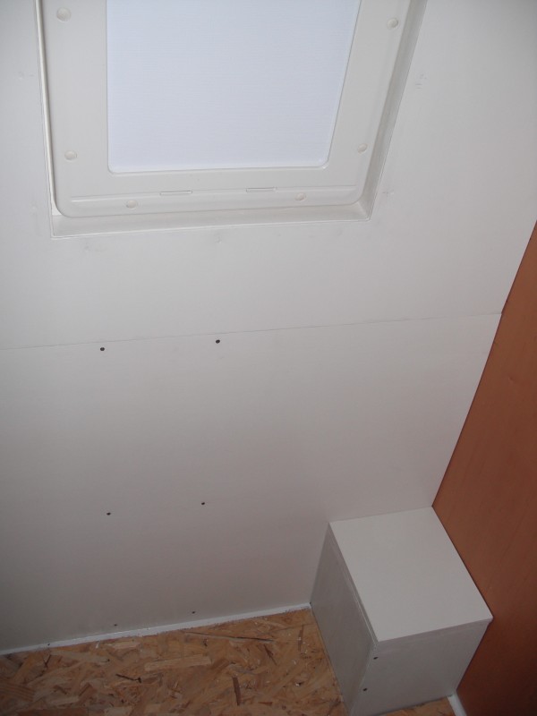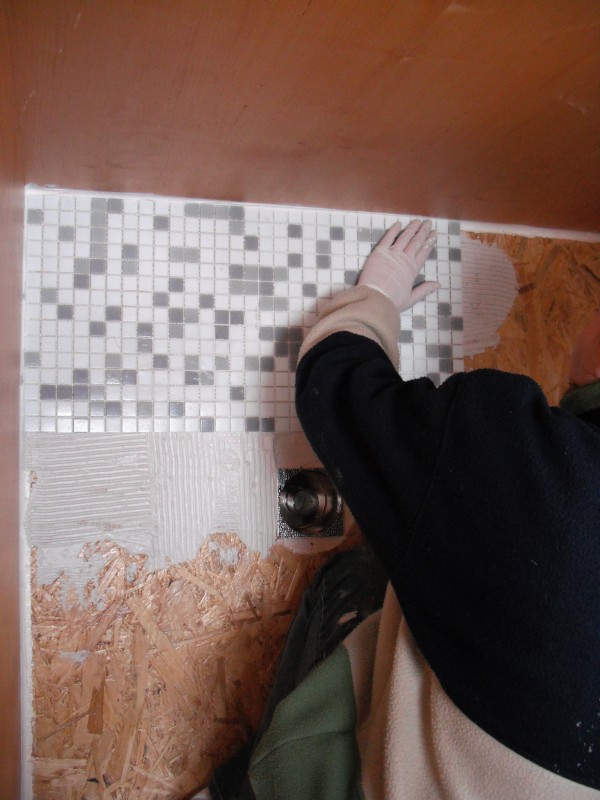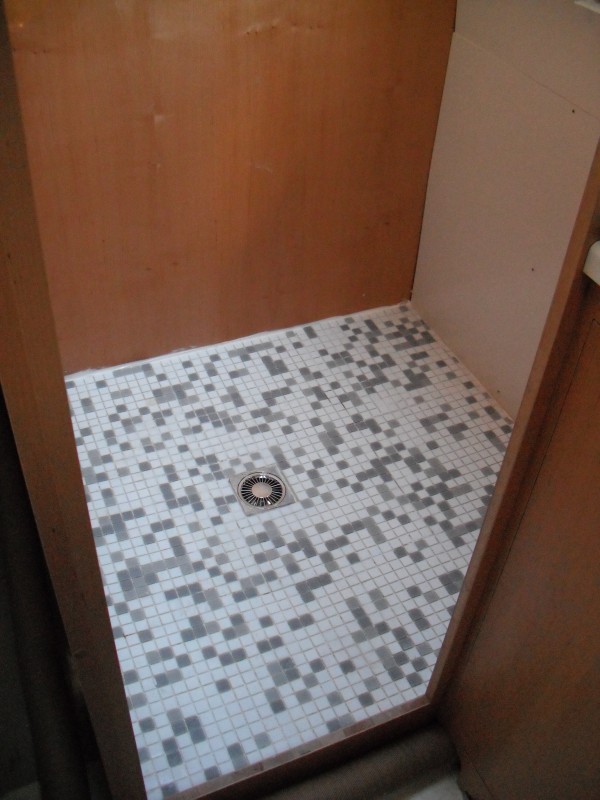 Haben das Bad gefließt, und die Türverkleidung der Schiebetüre fertig gemacht, so wie fertig isoliert. Bervor jetzt Fragen auftauchen, der Fließenkleber ist ein spezieller Flexkleber mit einer Flüssigkeit zusätzlich angerührt die auf Holz haftet und flexibel bleibt. Die Fliesen sind aus Glas, wegen dem Gewicht. Der Boden wiegt nur 8kg incl. allem Kleber und Fugenspachtel.