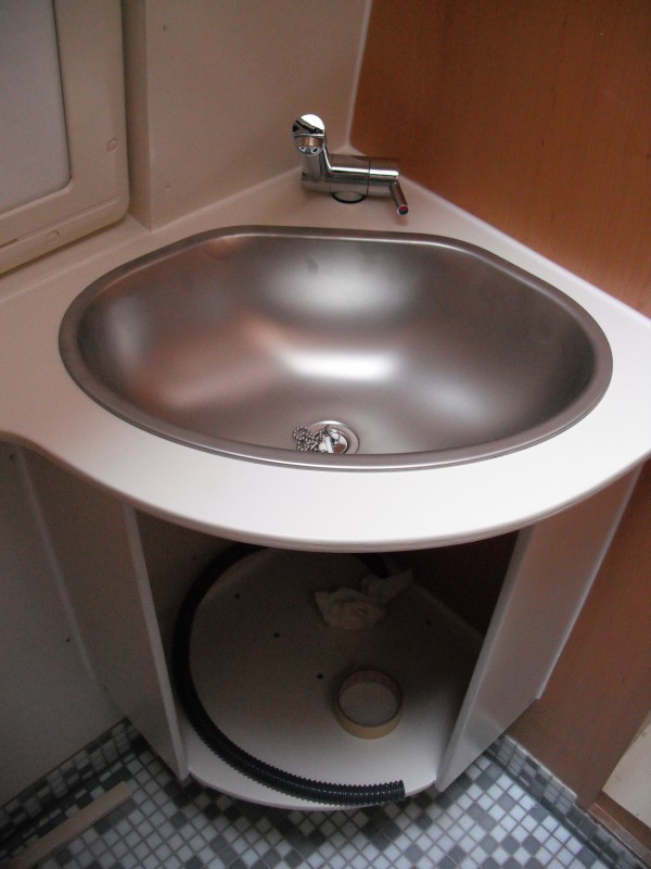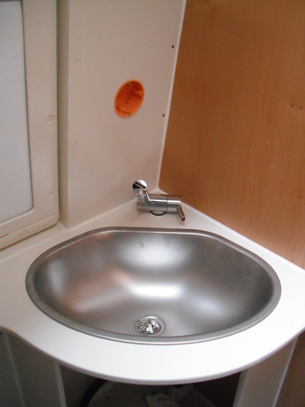 Unterm Waschbecken hat ja der Unterboden eine Rundung, kommt davor noch eine Tür oder nur ein Vorhang? da kommt ein Vorhang hin, hätten lieber eine Türe aber das zu bauen ist viel zu aufwendig, und ausserdem vielleicht komt uns ja noch eine zündennde Idee.