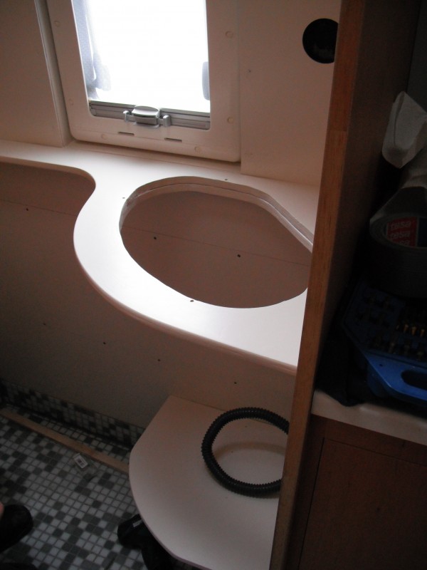 Wie macht ihr das mit der Öffnung unter dem Waschbecken? Sperrholz verleimen? wie meinst du das, das wird Stauraum, da kommt noch ne Aluschiene hin damit nichts raus fallen kann.