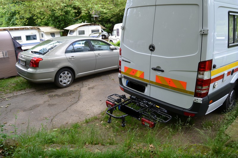 Anhängerkupplung montiert für den Fahrradträger, der soll am Freitag kommen. Foto kommt nach