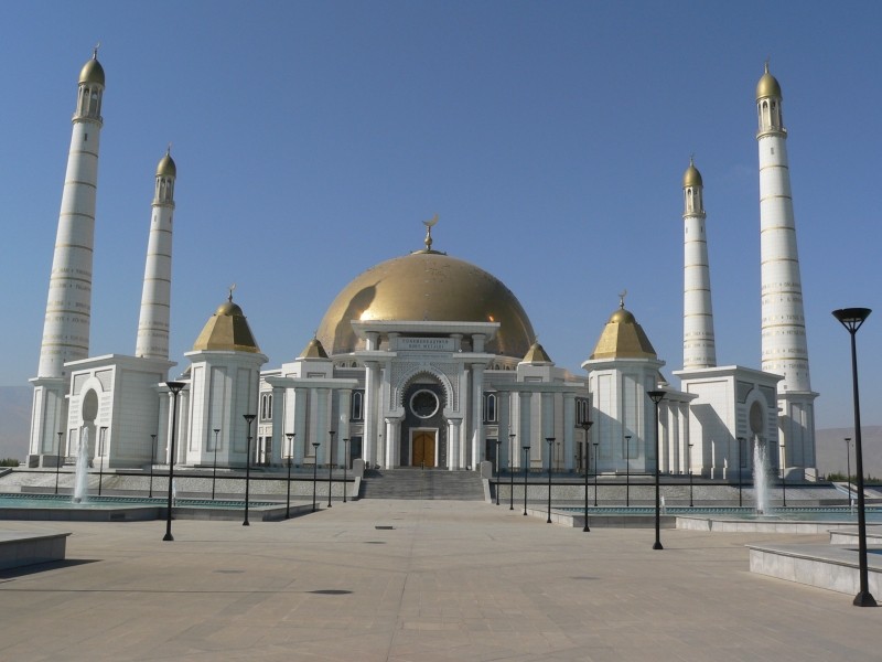Nach der Wüstendurchquerung kommt gleich die Hauptstadt Ashgabat. Eine pompöse, surreale Stadt, die sich da der erste Staatspräsident, Turkmenbashi (Vater aller Turkmenen) genannt, hat bauen lassen. Die Straßen sind dreispurig in jeder Fahrtrichtung und entlang den Hauptstraßen stehen pompöse neue Gebäude (Büro- und Wohngebäude - größtenteils unbewohnt!) um den Reichtum des Staates zu zeigen. Die Fassaden – selbst die der leerstehenden Wohngebäude sind mit weißem Marmor überzogen (kostet so rund 6-9 Millionen US$/Gebäude). Überall konnte man auch das Konterfei des Präsidenten sehen, sowohl auf Plakaten als auch auf Denkmälern. Überall sind Parks mit Springbrunnen und Bänken – nur ist niemand darin. Keine Menschen auf den Straßen und in den Parks, alles fast wie ausgestorben. In der Mitte der Stadt befindet sich ein großes, modernes Einkaufszentrum. Hier kann man wirklich alles kaufen, was das Herz begehrt. Käse aus der Schweiz und Holland, Barilla-Nudeln, dunkles Brot, Schokolade aus Deutschland…und alles zu sehr moderaten Preisen (aus deutscher Sicht). Subventioniert wird alles vom Staat aus den Einnahmen der Erdölquellen um das Volk ruhig zu halten. Internetverbindungen ins Ausland funktionieren dagegen nicht und auch unsere Handy gehen nicht da in Turkmenistan keine Roamingverträge mit ausländischen Anbietern abgeschlossen werden. Es wird also einerseits versucht, das Volk gegenüber dem Ausland abzuschotten und das Wissen gering zu halten, andererseits werden „Geschenke“ (s.o.) großzügig verteilt. Die Stadt kann man vom pompösen Aufwand her gut mit Las Vegas vergleichen. Ein wenig außerhalb der Stadt hat sich der erste Staatspräsident ein eigenes Mausoleum mit gigantischer Moschee bauen lassen. Auch hier alles vergoldet und mit weißem Marmor. Überall stehen Denkmäler und Statuen vom ersten Präsidenten (vergoldet natürlich). Turkmenbashi hat auch ein Buch geschrieben, welches die Bibel für alle Turkmenen sein soll. Auch heute noch wird das Wissen über den Inhalt des Buches selbst bei Einstellungsgesprächen abgefragt. Für das Buch wurde sogar ein großes Ehrendenkmal mitten in der Stadt errichtet. Das Wasser wird in den Springbrunnen und Bewässerungsanlagen der Hauptstadt verschwendet, man zapft halt einfach des Kaspische Meer an und baut einen gigantischen Kanal dafür. Auch nachts ist die Hauptstadt durch unzählige Lichter und Strahler kitschig beleuchtet. Wichtige Prachtstraßen im Stadtzentrum haben sogar beleuchtete, befahrbare Mittelstreifen aus Milchglas. Die Ampelanlagen sind aus V2A-Stahl, glänzen in der Sonne und haben ganz moderne Leuchten mit LED und Sekundenzählwerk. Die Versorgung mit Krankenhäuser und Schulen sowie der Zustand der Straßen außerhalb des Gebietes der Hauptstadt dagegen stecken noch in den Kinderschuhen. Irgendwie ist alles total surreal – Absurdistan in Reinform lässt grüßen.