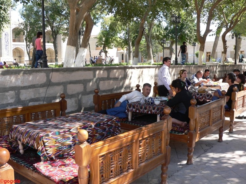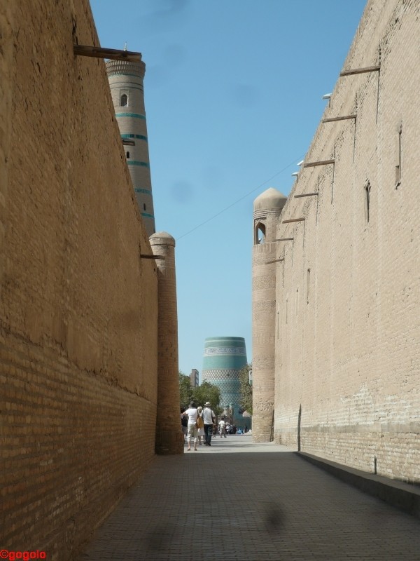 Vor der Stadt lies ich mir für umgerechnet 7,50€ das Gogolobil total waschen (außen und innen das Führerhaus incl. Fenster). Buchara (hier waren wir ebenfalls zwei Tage) selbst mit der gewaltigen Festungsmauer ist immer wieder beeindruckend, wenngleich auch hier restauriert und gebaut wurde. Aber Labi-Hauz hat sich nur unwesentlich verändert und wir aßen im gleichen Restaurant wie damals. Gogoline hat sich im Markt ein langes Kleid für den Iran gekauft, denn dort müssen alle Frauen züchtig herumlaufen.