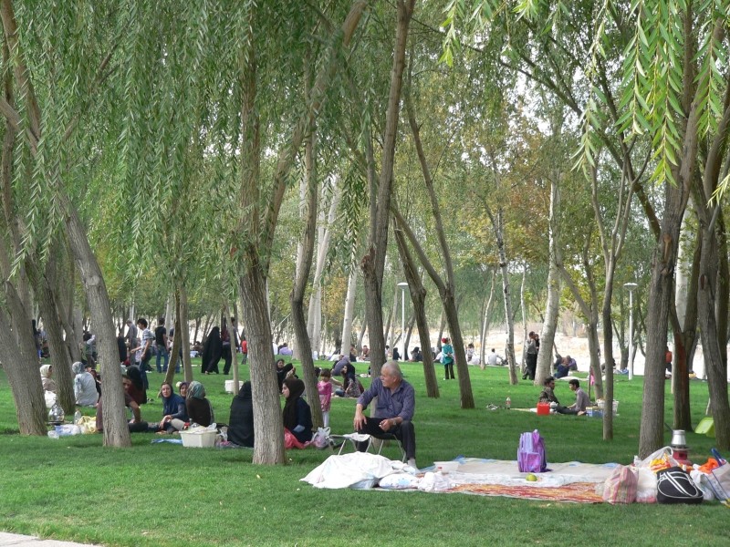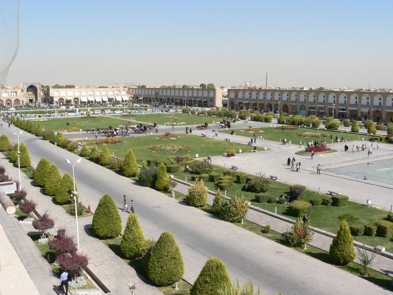 Unser Weg führt jetzt immer weiter nach Norden (wo es merklich kühler, aber immer noch angenehm ist). Isfahan (rd. 1550m ü.d.M.) war das nächste Ziel. Die Provinz Isfahan grenzt an die Höhenkämme des Zagros-Gebirges und im Nordosten geht sie über in die Salz- und Geröllwüsten der Dasht-e Kavir. Die Landschaft war entsprechend interessant. In Isfahan ist besonders bemerkenswert der schöne, große Imam-Platz, der Chebel-Sofun-Palast (auch 40-Säulen-Palast genannt), die vielen gepflegten und wohlgestalteten Parks, die Khaju-Brücke und der Große Basar. Dort kauften wir auch einige Souvenirs und Süßigkeiten sowie Safran ein. Gerade an den Freitagen sind in den Parks viele iranische Familien beim Picknicken. Sie sind total freundlich und geben uns gerne etwas zum kosten von ihrem mitgebrachten Essen ab. Fotografieren ist nicht nur erlaubt, sondern manchmal sogar erwünscht.