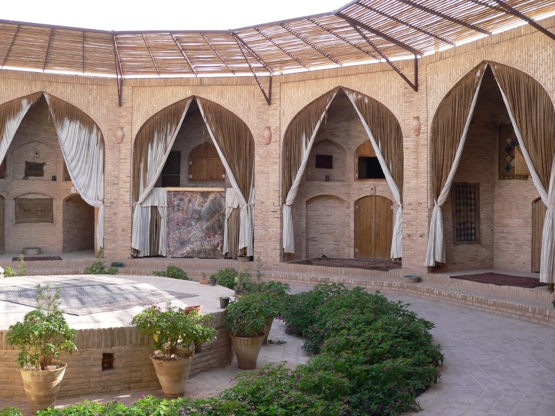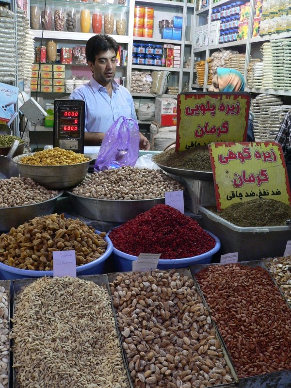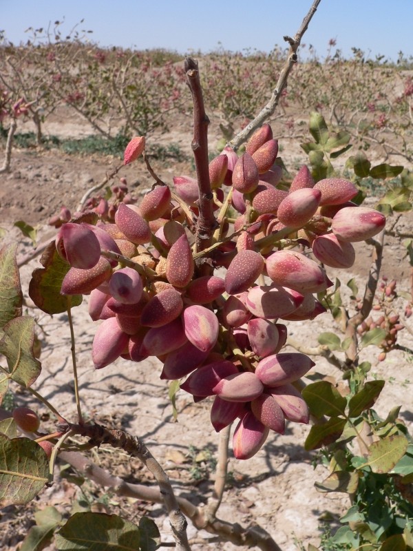 Auf dem Wege in Richtung Süden nach Kerman kamen wir an einer hervorragend restaurierten Karawanserei „Zeyn od Din“ vorbei. Viele Architekturstudenten haben die alten Gemäuer liebevoll und aufwendig restauriert und heute ist diese Karawanserei ein Hotel und Restaurant. Wir haben dort ein gutes zweites Frühstück genossen. Solltet Ihr mal in den Iran in diese Gegend kommen, dann wäre es fast eine Sünde, diese Karawanserei nicht zu besuchen. Man spürt hier richtig und unmittelbar den Flair der alten Zeit der Seidenstraße und kann sich richtig vorstellen, wie hier in alter Zeit das Handelstreiben war. Auch die weitere Fahrt war wieder hochinteressant, führte sie doch durch das größte Pistazienanbaugebiet des Iran (die besten Pistazien sollen von hier stammen). Natürlich kaufte ich uns unterwegs an einem kleinen Geschäft sehr günstig frische Pistazien. Auch konnten wir beim Pflücken der Früchte zusehen und auch diese fotografieren. Pistaziensträucher soweit das Auge reicht und es war gerade Erntezeit.