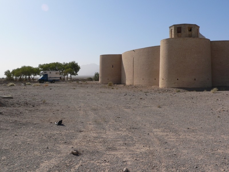 Der Iran ist auch das Hauptland der Zoroastrier (Anhänger des Zarathustra), und so fuhren wir zu einem Feuertempel nach Chackchack. Wieder war die Landschaft ganz großartig, aber draußen hatte es 40°C und gottseidank ging unsere Klimaanlage wieder einwandfrei. Sonst wäre die Fahrt trotz der beeindruckenden Landschaft ein Quälerei geworden. Immer wieder kamen sowohl bei unseren Rastplätzen aber auch am Abend am Stellplatz interessierte und freundliche Menschen zu uns und es war überraschend, wie viele sehr gut englisch sprachen.