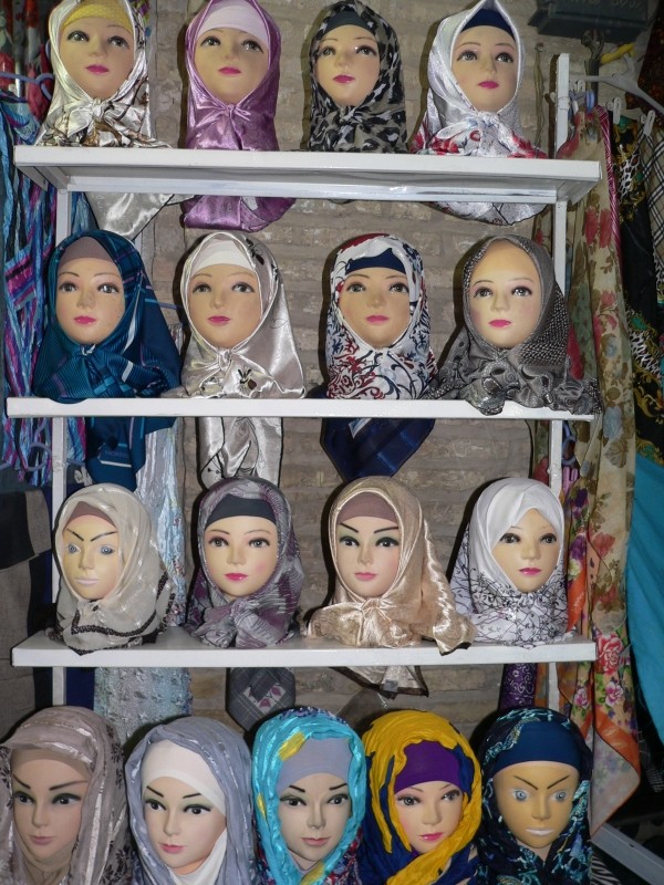 Einer der schönsten Basare haben wir dann in Kerman besucht und auch ein Teehaus, in dem traditionelle Musik gespielt wurde und die Einheimischen zur Wasserpfeife (ja, hier darf man noch rauchen!) ihren Tee tranken. Auch in Kerman gibt es noch Windtürme, denn die Hitze in der Wüste ist sonst im Sommer nicht zu ertragen. Ein Gruppenmitglied hatte in Kerman einen kleinen Unfall (Blechschaden) verursacht und so konnte gleich die obligatorische iranische Haftpflichtversicherung getestet werden. In Kerman konnte man auch schon ganz modern gekleidete junge Iraner sehen, allerdings trotzdem mit dem vorgeschriebenen Kopftuch. Kopftücher haben selbst die weiblichen Schaufensterpuppen auf…