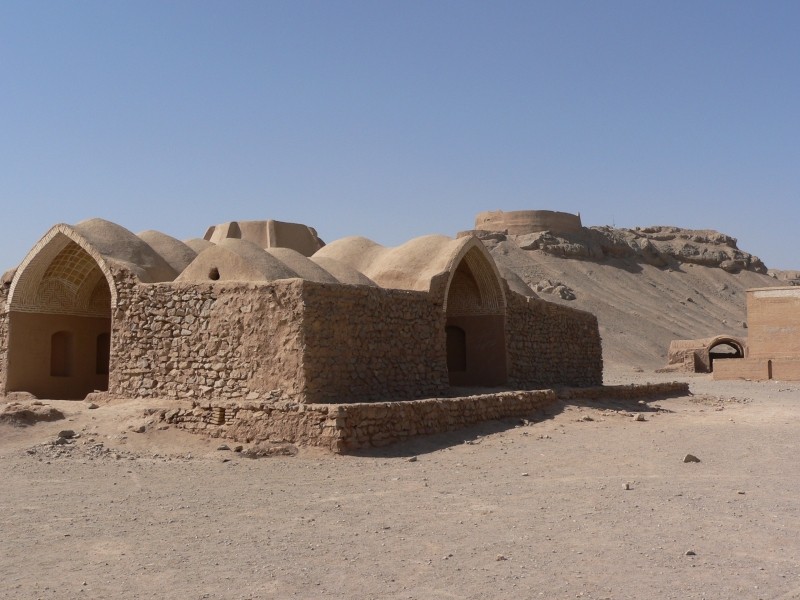 Yazd war die nächste Station unserer Reise. Ebenfalls eine Stadt in der sehr viele Zoroastrier leben. Sie hatten in früheren Zeiten so genannte „Türme des Schweigens“ in denen nach dem Tode die sterblichen Überreste gebracht wurden wo sie dann von Geiern gefressen wurden – ähnlich wie die „Himmelsbestattungen“ in Tibet. Yazd ist ferner bekannt durch die Windtürme, die zur Kühlung der Häuser gebaut werden. Durch den ständigen Wind findet eine natürliche, effiziente Kühlung der Wohnungen über diese Türme statt. Eine weitere Besonderheit von Yazd sind auch die Süßigkeiten, die in dieser Stadt hergestellt werden – im Iran ist Yazd dafür berühmt. Die Süßigkeiten sind aber auch wirklich saugut, viel mit Zucker und Pistazien, Walnüssen, Safran und Sesam.