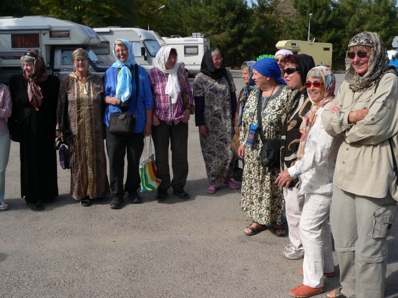 Überall im Lande sind Polizeikontrollen und selbst in der Wüste stehen hinter den vereinzelten Büschen Polizisten und kontrollieren mit der Radarpistole streng die Einhaltung der vorgeschriebenen Geschwindigkeit. Auf dem Weg nach Mary, unserem nächsten und letzten Ziel in Turkmenistan, aber auch schon vorher sahen wir einige Kontrollen auf den Straßen. Auch ich wurde einmal zur Passkontrolle angehalten. Diese Straßen waren zunächst in der Umgebung der Hauptstadt noch recht gut ausgebaut, je weiter wir aber in Richtung Mary kamen desto schlechter wurde der Zustand – bis hin zum oben erwähnten sowjetischen Asphalt. Die rund 340 Tageskilometer zogen sich bei 31°C zäh über acht Stunden hin. Fahren in Turkmenistan als Ausländer ist stark reglementiert. Schon bei der Einreise wird auf einem Formular die Strecke eingezeichnet, die man fahren darf. Davon darf keinesfalls abgewichen werden – darüber wachen drei Sicherheitsbeamte, die uns begleiten. Wir fahren zwar nicht im Konvoi, aber die Gruppe muss sich innerhalb eines Zeitfensters auf einer vorgeschriebenen Route bewegen. Bei der Ankunft auf Hotelparkplätzen werden die Pässe und Fahrzeugdokumente zur Registrierung eingesammelt. Alles wird überwacht. Vor was haben die Turkmenen eigentlich solche Angst? In Mary besichtigten wir im Rahmen eines Tagesauflugs die Ausgrabungen von Merv, der alten Seldschukenhauptstadt. Darauf habe ich allerdings verzichtet, da ich vor dem Iran mal beim Gogolobil alle Schrauben und Verbindungen aufgrund der bisherigen Rüttelei kontrollieren wollte (gottseidank nichts Besorgniserregendes gefunden). Am Abend wurden dann sämtliche Alkoholvorräte „vernichtet“, denn bei der Ausreise in den Iran am nächsten Tag dürfen keine Alkoholika und auch kein Schweinfleisch an Bord sein (gut dass die Iraner nicht wissen, .dass meine künstliche Herzklappe vom Schwein stammt, sonst dürfte ich wohl nicht einreisen). Wir standen mit unserem Mobilen wieder bei einem Hotel und in der Nähe war auch ein parkplatz für die großen Lkws u.a. aus dem Iran. Direkt bei uns – nur durch eine kleine Baumreihe getrennt – war ein Nebeneingang zu einer im Hotelgebäude befindlichen Rotlichtbar. Die Mädels fanden uns wohl ganz interessant und kamen zu einem kleinen Plausch zu uns und haben uns und unsere Fahrzeuge fotografiert. Das Treiben der Fernlastfahrer in der Bar fanden dagegen wir hochinteressant… Zum Grenzort nach Iran mussten wir wieder ein großes Stück der Rüttelstrecke zurück fahren und standen dann nach der überraschend wenig bürokratischen Ausreise (unterstützt durch örtliche Reiseleitung und Sicherheitsdienst) im Zollhof zwischen Turkmenistan und Iran. Wurde uns von unserem Reiseleiter prophezeit, dass die Kontrollen an der iranischen Grenze sehr streng sind und vor allem nach alkoholischen Getränken (Verstöße werden angeblich wie Rauschgiftvergehen geahndet) und der Einfuhr von Schweinefleisch gesucht wird. Umso überraschter waren wir, dass nur das erste unserer Fahrzeuge sehr streng kontrolliert wurde, das zweite Fahrzeug schon weniger, das dritte Fahrzeug (wir mit unserem Gogolobil) und auch die weiteren Fahrzeuge wurden gar nicht mehr kontrolliert. Es erwartete uns schon das iranische Team, das uns die Formalitäten mit dem „Carnet de Passage“ abnahm, 1.450.000 Rial (=100€) als Startgeld in die Hand drückte, sich um die obligatorische Haftpflichtversicherung für den Iran kümmerte und uns eine Tankkarte mit 300 Liter Dieselguthaben besorgte. Das alles nahm natürlich für 18 Fahrzeugbesatzungen viel Zeit in Anspruch und so kamen wir trotz der guten Vorbereitung erst mit Einbruch der Dunkelheit aus dem Zollhof heraus. Übernachtet haben wir dann in einem Hotelhof gleich in der Nähe der Grenze. Auch die Uhren mussten wieder umgestellt werden – wir sind im Iran nur mehr 1,5 Stunden der deutschen Zeit voraus. Auch Gogoline musste sich umstellen und schon ab der Grenze nun ein Kopftuch tragen und knöchelbedeckende Kleidung. Über den Iran werde beim nächsten mal eingehend Berichten, sind wir doch rund drei Wochen hier. Nach den Reiseberichten und –beschreibungen soll das ein ganz tolles Land sein mit unendlich viel Kultur – leider mit einer gestörten politisch-religiösen Führung. Leiden können diesesmal nicht so viele Bilder mitgesandt werden, da das hochladen unendlich lange dauert. Viele in die Heimat. Habe die Ehre Gogolo Sehr schöne Bilder, sieht ja schon alles sehr orientalisch aus.