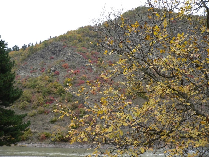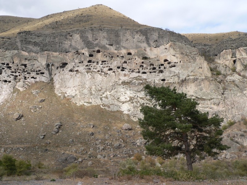 Aber über den Weg bis dahin möchte ich euch gerne noch berichten: In Georgien besichtigten wir ausgiebig die Hauptstadt Tiflis und wir konnten die Bemühungen sehen, aus der Stadt eine moderne Hauptstadt zu machen. Aber darüber habe ich ja schon berichtet. Die nächste Station in Georgien war Vardzia zu den Höhlen-Felsen-Klöstern dort. Auf dem Wege dorthin sah man schon die schneebedeckten Berge des Kaukasus – der Winter lässt grüßen. Das Wetter wurde immer besser und wir fuhren bei Sonnenschein durch eine wunderschöne herbstliche Gebirgslandschaft. Schon tags darauf ging es nach Batumi am Schwarzen Meer zu einem Stellplatz mitten im Botanischen Garten der Stadt. Auf der Hauptverbindungsstraße hierher konnten wir die „Fahrkünste“ der einheimischen Autofahrer „bewundern“, denn blinde Überholmanöver waren an der Tagesordnung und stellenweise wurde der Überholende auf einer zweispurigen Straße mit Gegenverkehr seinerseits noch überholt, also es wurden drei Fahrspuren „aufgemacht“ – und das trotz Gegenverkehrs. Der wird einfach mit der Lichthupe angeblinkt oder angehupt um ganz rechts zu fahren und nicht gerammt zu werden. Aber es ging immer gut aus… Vardzia:
