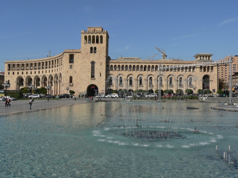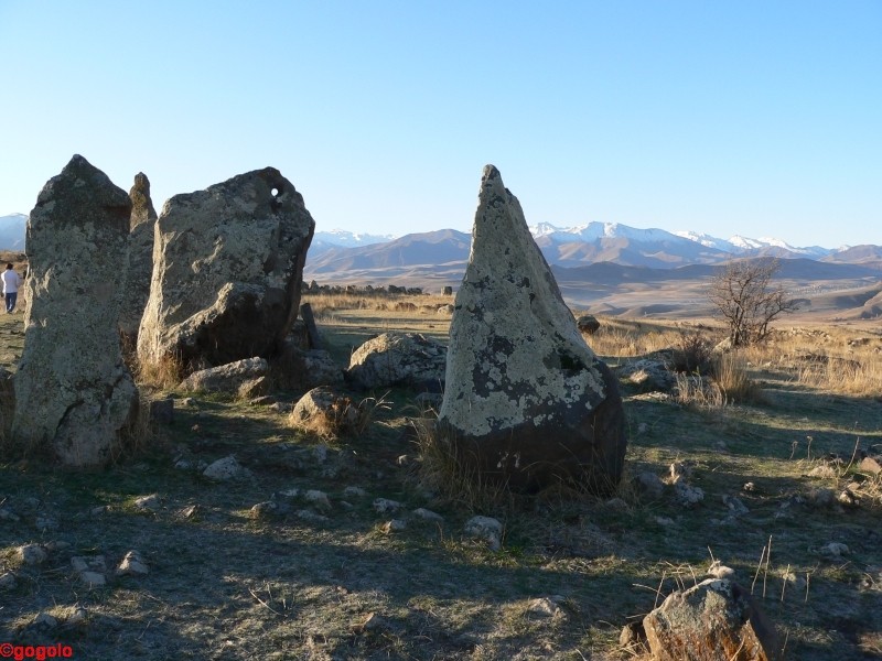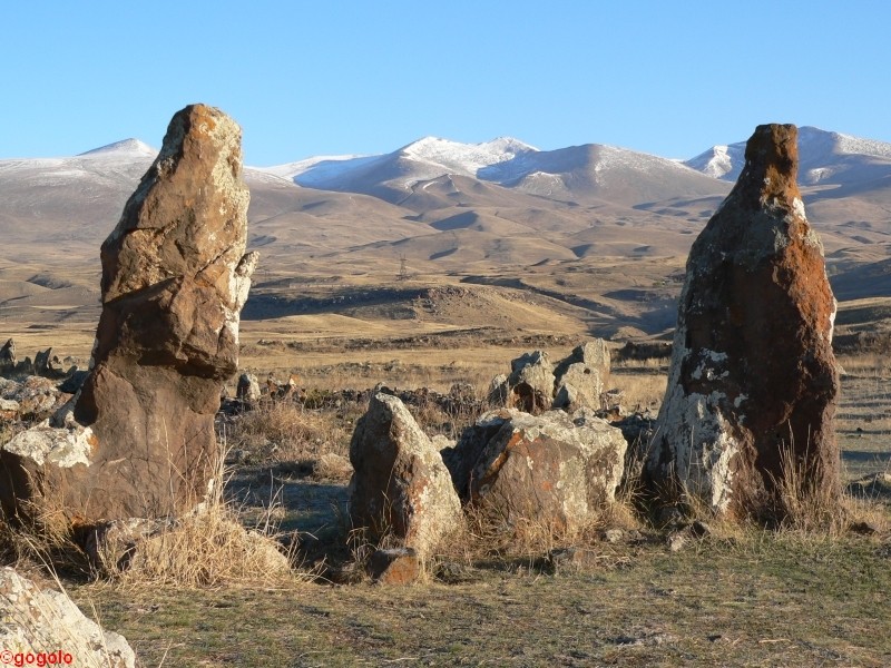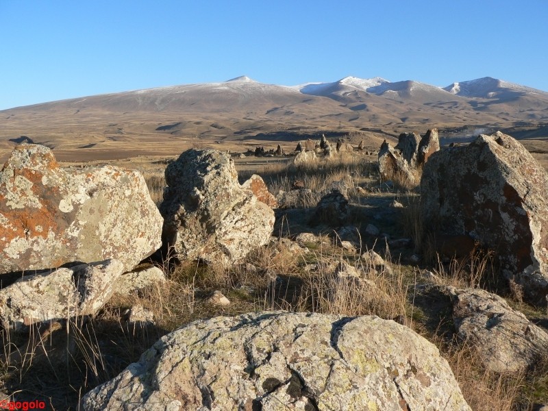 Auf dem weiteren Weg zur Hauptstadt Erewan konnten wir erstmals den Berg Ararat in seiner eindrucksvollen Größe bewundern. Er liegt zwar in der Türkei, aber von der armenischen Seite ist er fast an der Grenze und wir hatten wiederum mit dem Wetter großes Glück und sahen ihn zwei Tage lang ohne Wolken. Aber der Weg nach Erewan hatte noch mehr zu bieten: eine prähistorische Sternwarte bei Zorakarer, die schon vor rund 8000 Jahren gebaut wurde und somit älter ist als Stonehenge in England. Löcher in den aufgestellten Felsen dienten damals als Peilungen für Sonne und Sterne. Dann war auf dem Weg noch ein Besuch bei einem armenischen Weinkeller mit Mittagessen angesagt. Wir haben bei der Gelegenheit natürlich auch Wein eingekauft. Bei einigen Mitreisenden war deutlich zu merken, dass sie froh über das Ende der alkoholabstinenten Zeit waren…