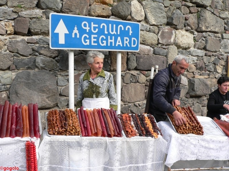 Erewan hatte ebenfalls einiges zu bieten: - eine Fahrt zum religiösen Zentrum Etschmiadzin mit Besichtigung der ältesten Kirche des Christentums. Unser Führer sang in den Kirchen wieder recht stimmungsvoll. - eine Fahrt zum Sonnentempel Garni und zum Felsenkloster Geghard (unterwegs wiederum wunderbare Aussicht auf den Berg Ararat und im Sonnentempel Garni spielte jemand stimmungsvoll auf einem armenischen Blasinstrument, genannt Duduk) - eine Stadtrundfahrt - einen Einkaufsbummel im Supermarkt um uns mit gewohnten europäischen Leckereien (u.a. Schwarzbrot, Schweinefleisch, Wurst, Käse, Bier, …) einzudecken und die Vorräte aufzufüllen.