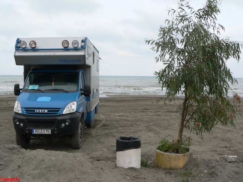 Zu einem Einkauf fuhren wir ins Stadtzentrum wo gerade auf dem Bazar reg es Treiben herrschte. Und hier kam bei mir der Kulturschock: alles spricht deutsch, tausende von Touris auf dem Bazar, gezahlt wird in Euro! Mensch, war es doch schön als wir noch im fernen Asien die einzigen Touristen waren. Mir geht schon nach ein paar Minuten das Ganze gehörig auf den Geist und wir verlassen nach unseren Einkäufen fluchtartig den Bazar. Wir beschließen gemeinsam: keine Reisen mehr in den üblichen Urlaubsgegenden zu machen (ausgenommen evtl. Überwinterung). Jetzt ist Entspannung angesagt. Morgens wird ausgeschlafen bis so gegen 8 Uhr. Die Füße werden hochgelegt, ein Buch gelesen, etwas im Internet gesurft, der Bericht vervollständigt und Gogoline nutzt auch die Zeit, Wäsche zu waschen. Ansonsten Spaziergänge am Meer, geistreiche aber zwanglose Gespräche mit den anderen aus der Gruppe – so können wir es aushalten bis es wieder weiter geht. Rund 2000 km sind es (Rest Türkei, Griechenland, Fähre, Venedig) noch bis nach Hause und es zieht uns gar nicht dorthin, kein Heimweh! Bis ca. Anfang Dezember sollten wir aber wieder in Rosenheim sein, wir haben es ja versprochen… Aber bis dahin gibt es sicher noch den einen oder anderen Bericht. Viele an die Heimat. Habe die Ehre Gogolo :D Wie immer Gogolo ! :D