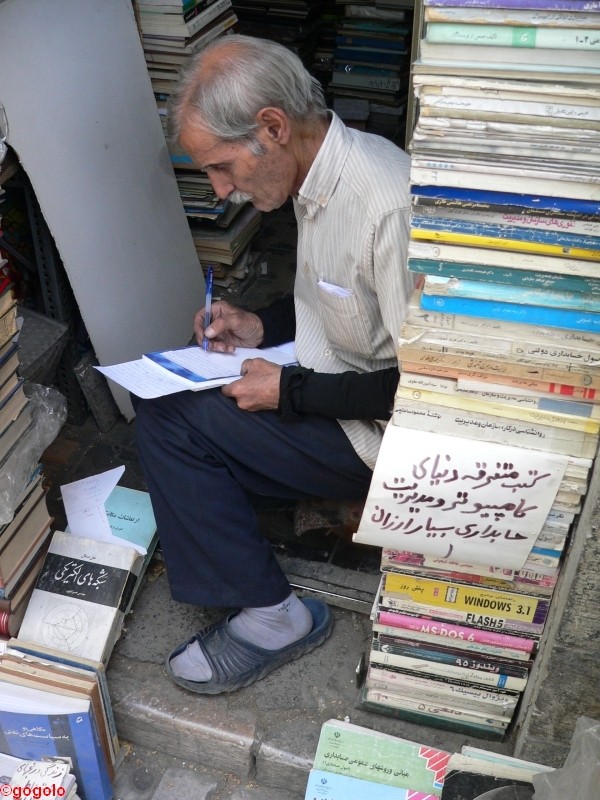 Der weitere Aufenthalt in Teheran führte uns zuerst in den Norden der Stadt – allerdings mit dem Bus, denn der Verkehr ist sagenhaft chaotisch. Die vielen Kleinkrafträder, aber auch die Autofahrer haben einen haarsträubenden Fahrstil. Dort im Norden der Stadt ist es merklich kühler als im Süden, alles ist viel vornehmer und dort sind schöne Villenvierteln. Wir besichtigten natürlich auch die Parkanlage des Schahs mit dem Grünen Palast. Zurück in der Stadtmitte verzichtete ich auf weitere Museen und setzte mich in ein Teehaus, wo zum Tee eine Banane, ein Apfel und eine kleine grüne Gurke gereicht wurde. Natürlich rauchte ich auch eine Wasserpfeife! In einem alten Buchladen, der bis zur Decke völlig überladen war, entdeckte ich eine deutsche Ausgabe der „Technischen Vorschriften für Baumaschinen – Jahrgang 1971“. Zu einem iranischen Abendessen gingen wir wieder in die Nordstadt ins „Alighapoo“, das ist ein schönes Kellerlokal mit einer tollen Atmosphäre.