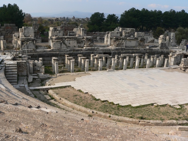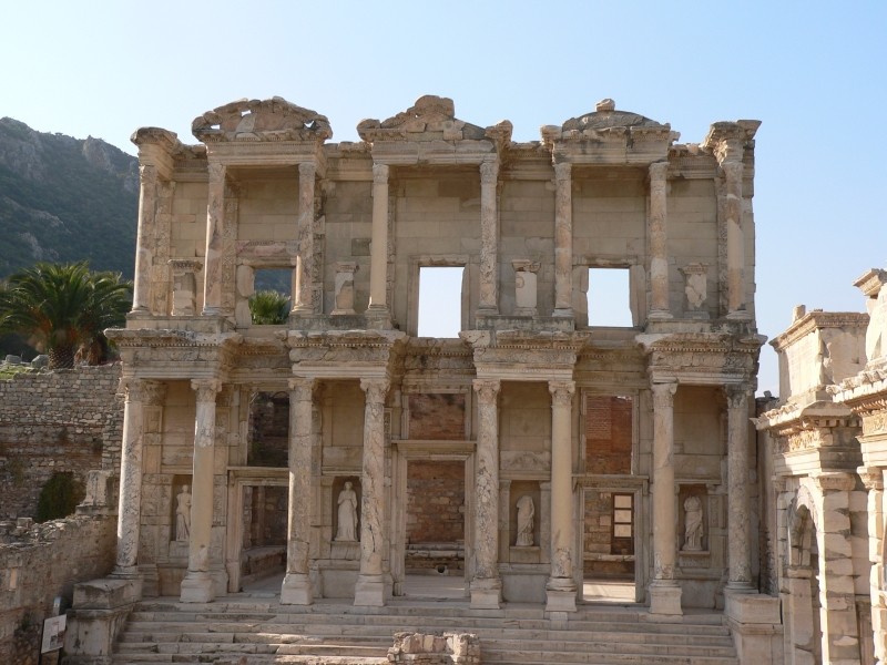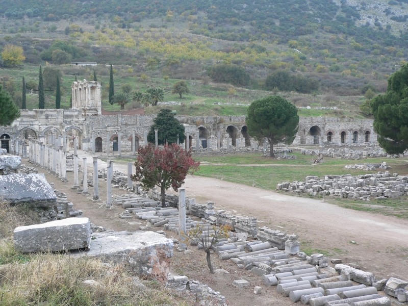 Nächste Station in der Türkei war dann das Ausgrabungsgebiet von Ephesus. Unterwegs waren sehr viele Baumwollfelder und die Baumwollernte war im vollen Gang. Auch Olivenbäume, Orangen- und Clementinenbäume säumten die Straße und die Früchte leuchteten in der Sonne ganz toll. Auf dem Parkplatz in Ephesus haben wir den Türken Sultan kennen gelernt, der uns geraten hat, die Nacht in der Nähe einer Teppichknüfschule zu verbringen, da dort Bewachung ist. Wir nahmen das Angebot gerne an und sind sofort nach der Ankunft dort mit Tee, Raki und Selbstgebackenem bewirtet worden.