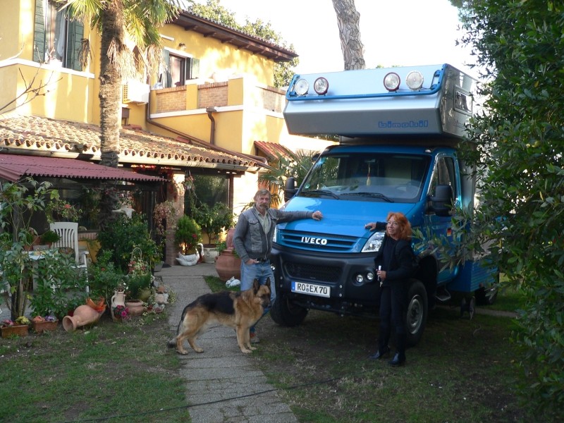 In Venedig – direkt an der Laguneneinfahrt bei Punta Sabbione – haben wir Freunde, die vor vielen Jahren aus Deutschland ausgewandert sind und dort ein riesengroßes, wunderschönes Anwesen haben. Es war von vorneherein klar, dass wir Herbert und Christl sowie Sohn Simon nebst Freundin Giarda vorbeischauen werden. Sie haben uns schon erwartet und wir wurden sogleich mit Weißwürsten, Brezen, süßem Senf und Oktoberfestbier bewirtet (am Abend gab es dann sogar frischen Schweinebraten). Am nächsten Tag wurden wir mit italienischen Spezialitäten verwöhnt. Aber die Gastfreundschaft hörte nicht auf und auch das Gogolobil erhielt eine Hochdruckwäsche von oben bis unten so dass es nunmehr in der Sonne blitzt und blinkt. Danke nochmals für ALLES!
