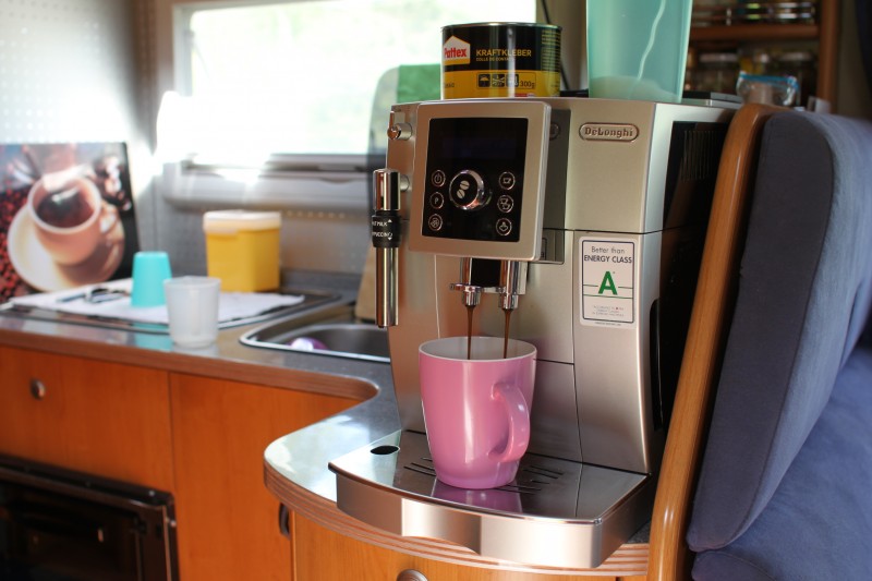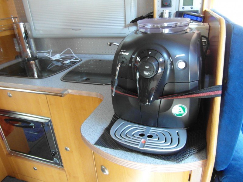 Wir wohnen ja auch 7 Monate darin, da gönnt man sich ein wenig Luxus, die "Sesshaften" unter uns haben ja auch meistens eine Kaffeeautomat zu Hause stehen :-) Das Bild ist ja auch für Thomas gedacht, der macht nämlich auch den ganzen Tag Kaffee, gelle :wink: